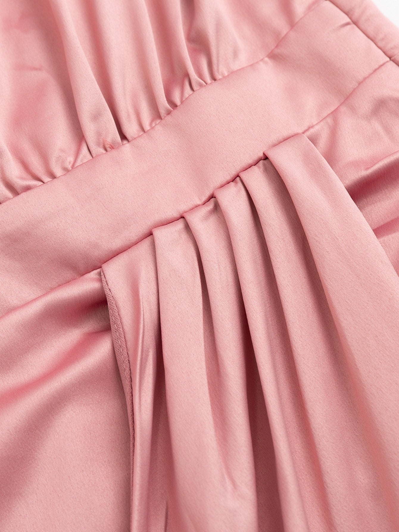 Chic and Sophisticated: Glamaker Ruffle Neck Wrap Hem Satin Dress
