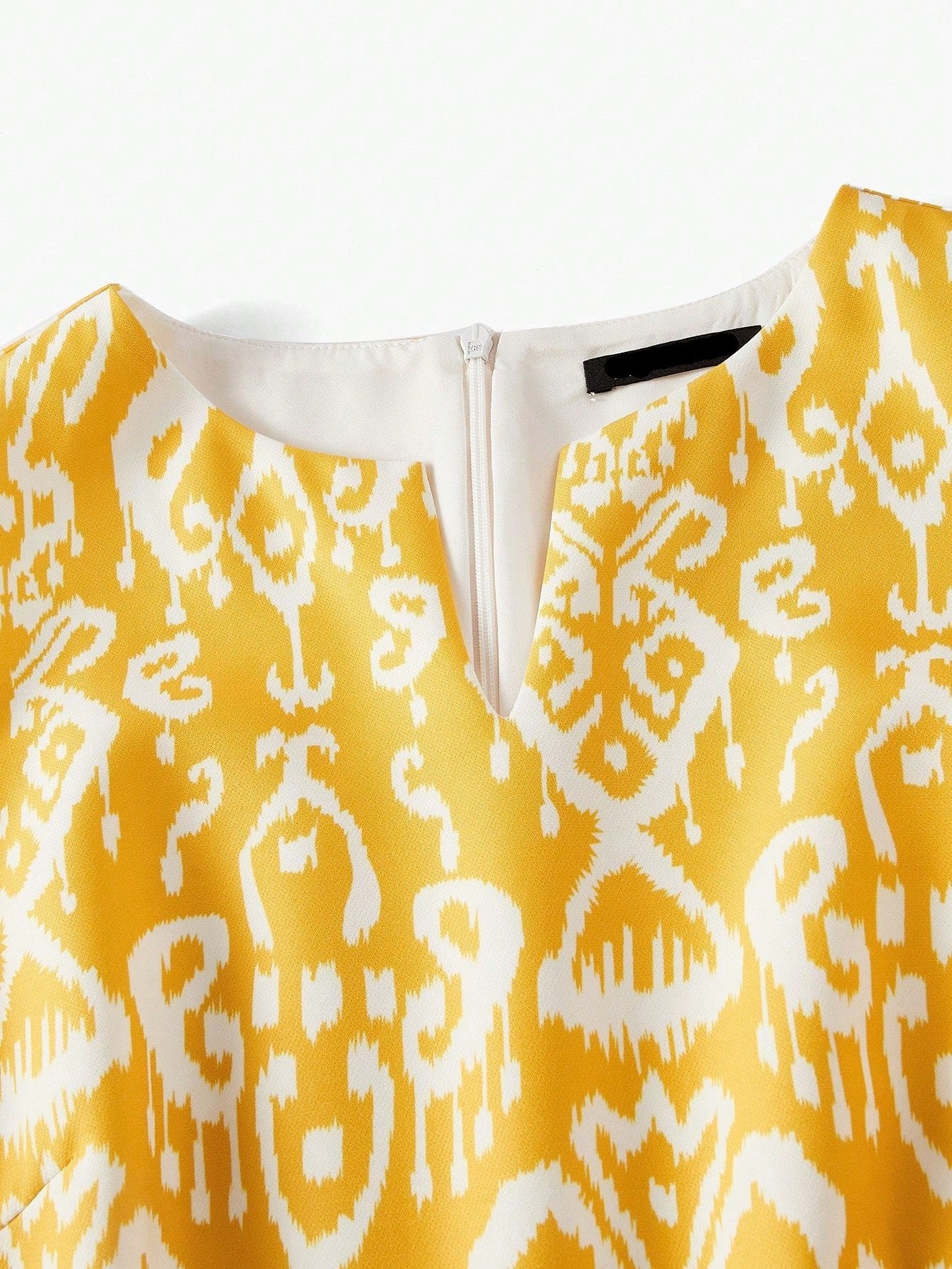 Chic and Stylish: Allover Print Notch Neck Split Hem Dress