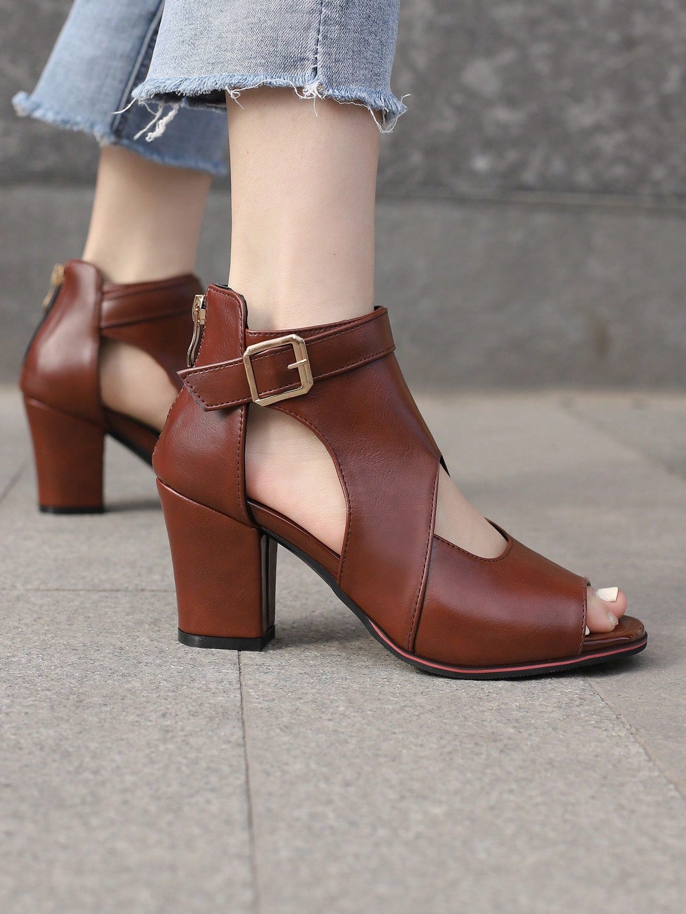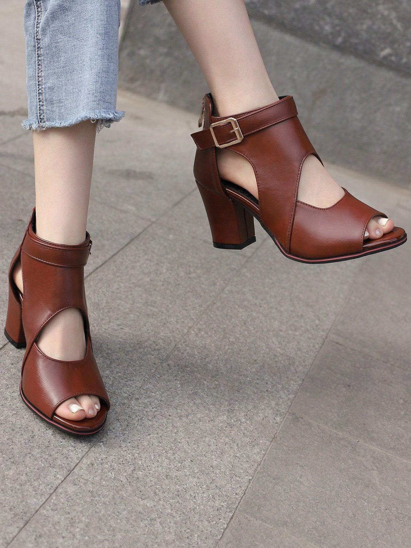 Chic and Stylish: Brown Sandals with Hollow Out Design and High Heel