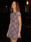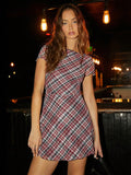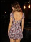 Chic and Stylish: Color Plaid Square Neck Backless Mini Dress