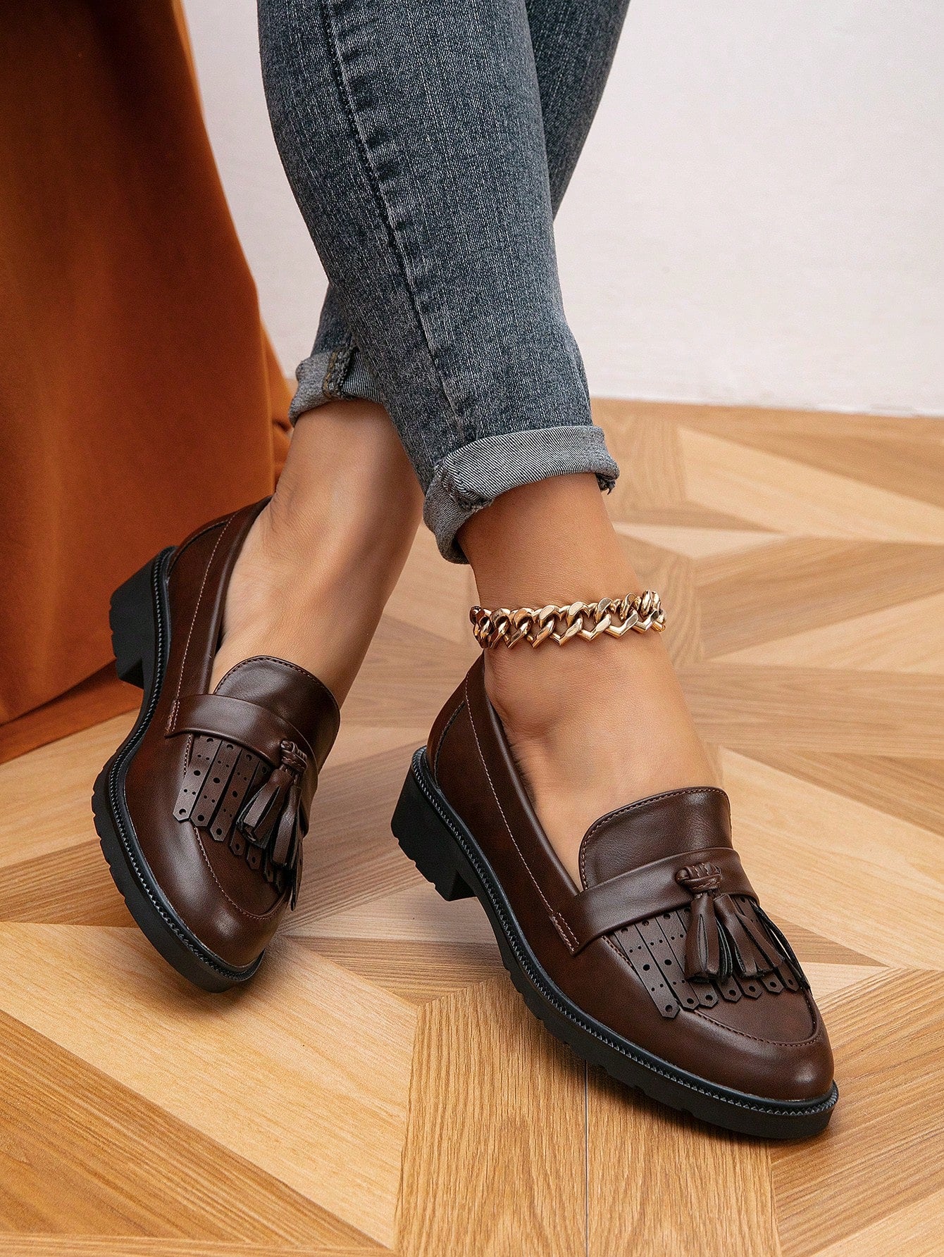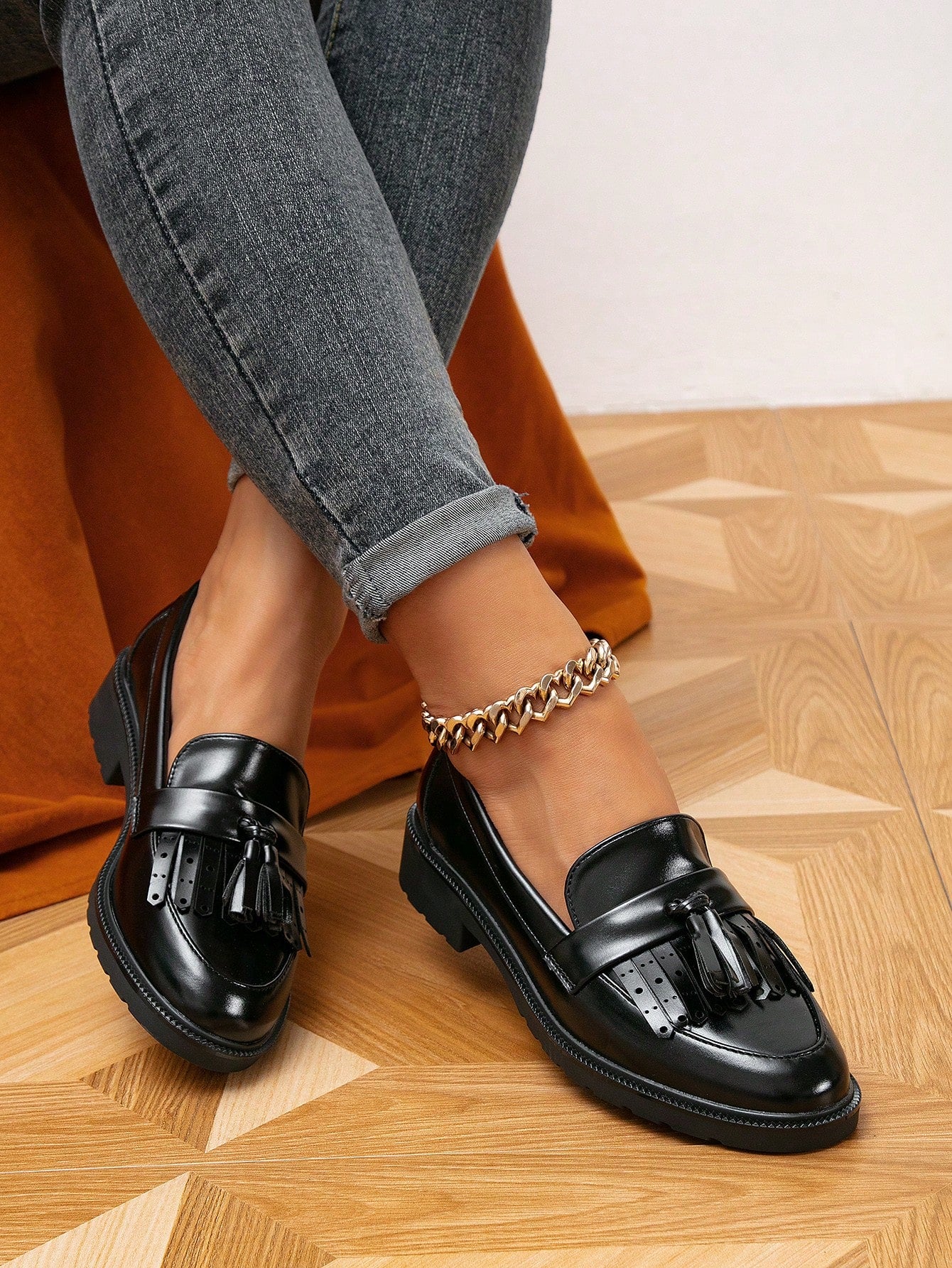 Chic and Stylish: Minimalist Fringe Decor Loafer Flats for Women
