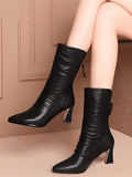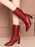 Chic and Stylish: Women's Red Mid-Calf Boots with Chunky Heel and Back Zipper