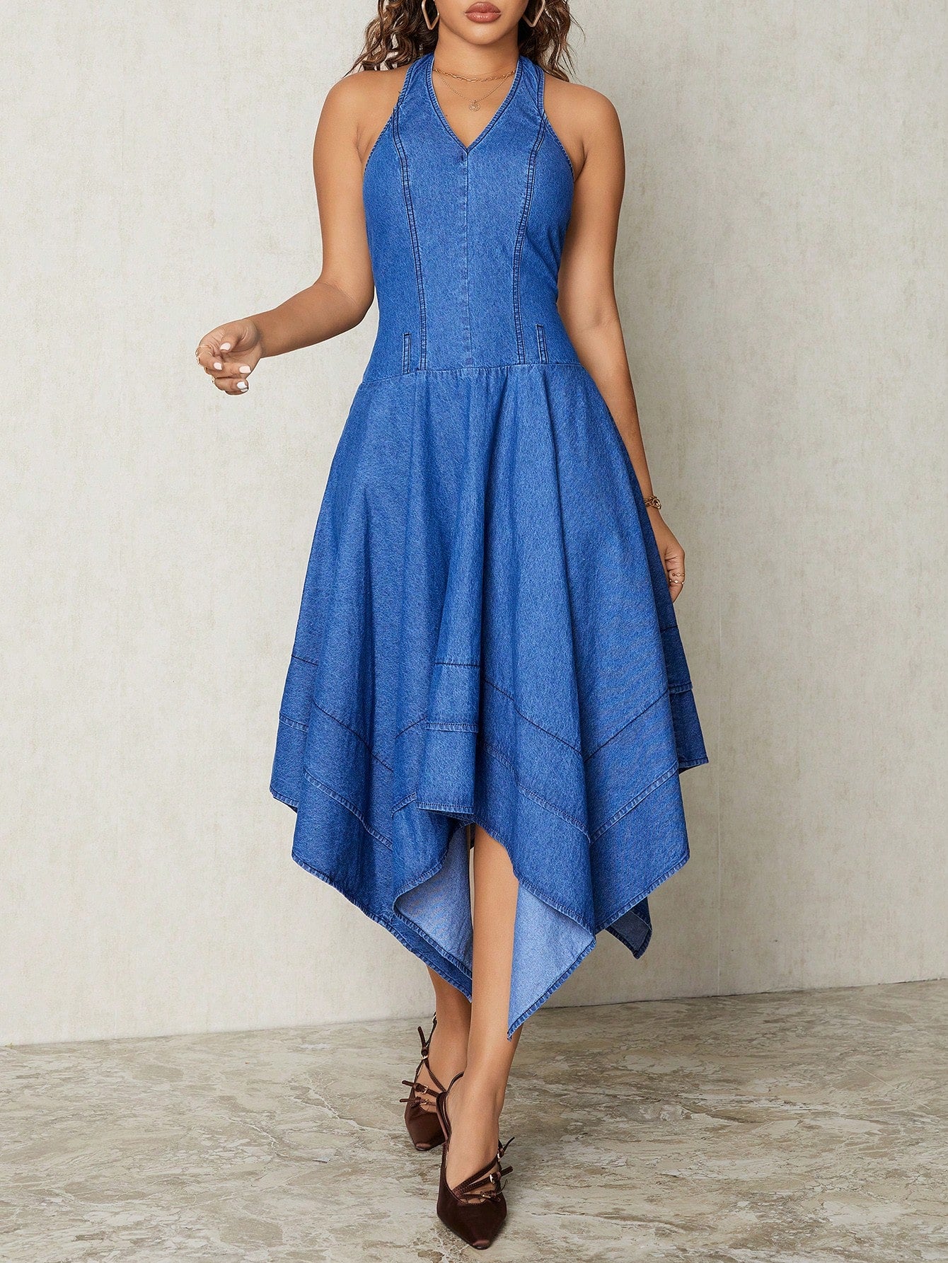 Chic Asymmetrical Hem Denim Dress - Effortless Style for Every Occasion