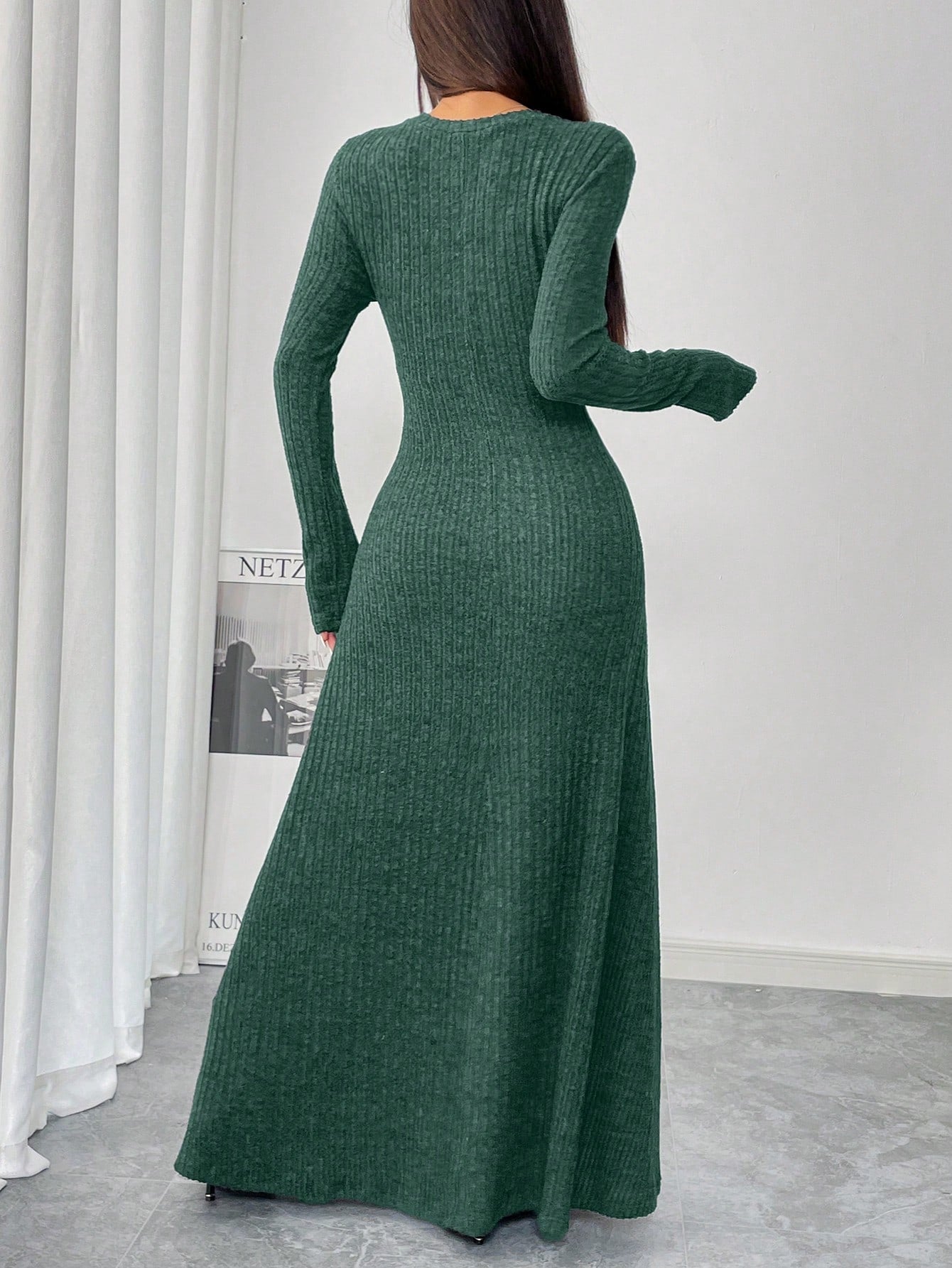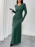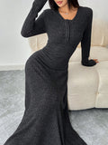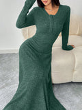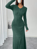 Chic Autumn-Winter Waist-Cinched Solid Color Long Dress for Effortless Style