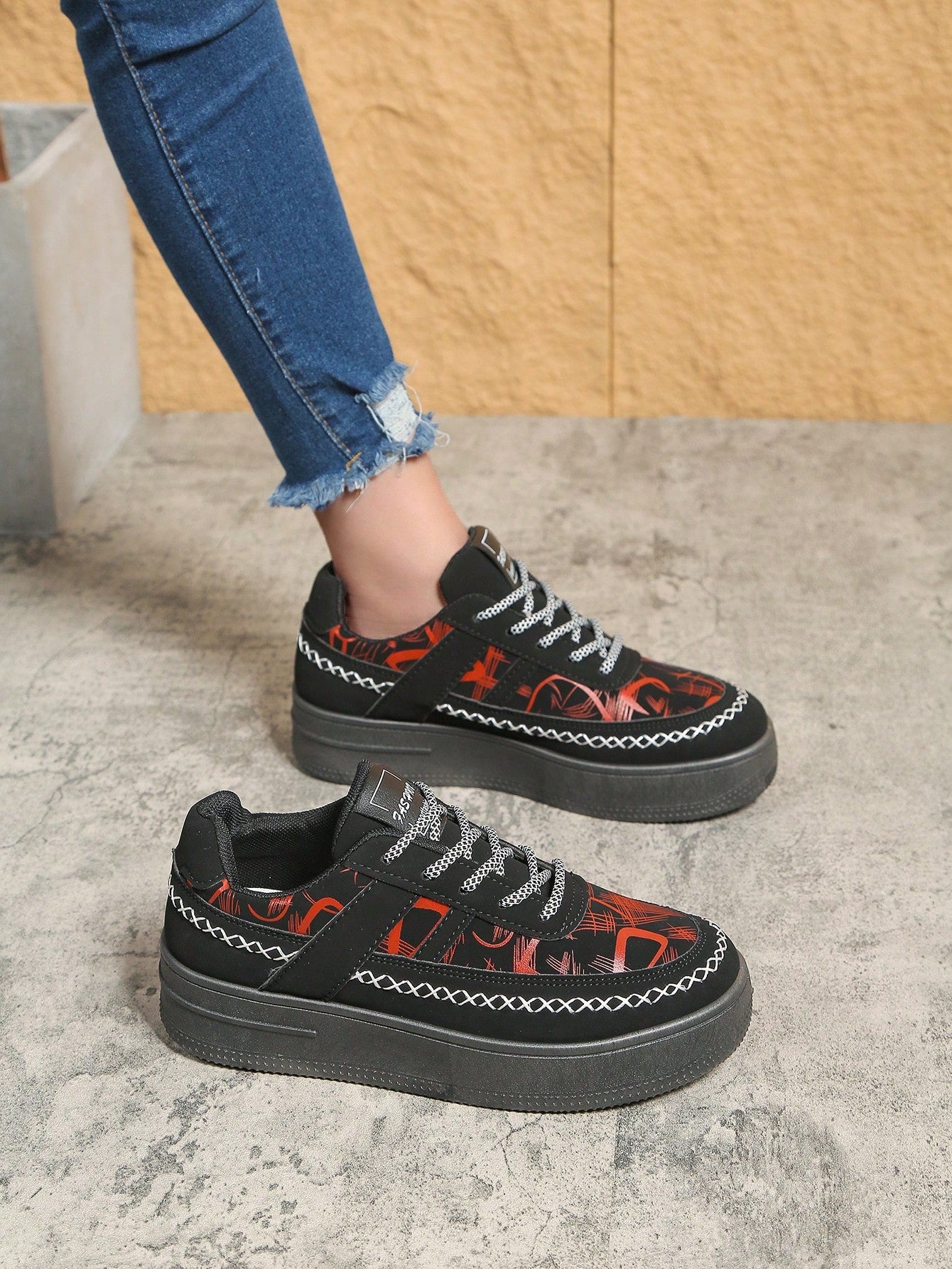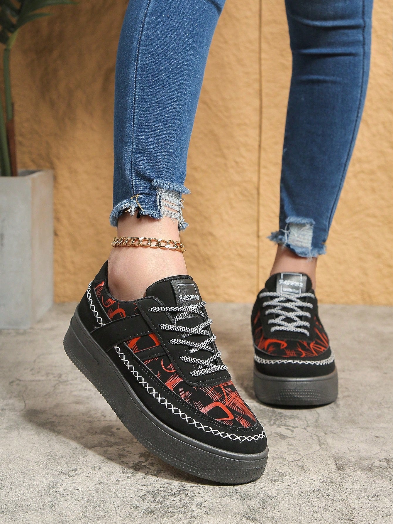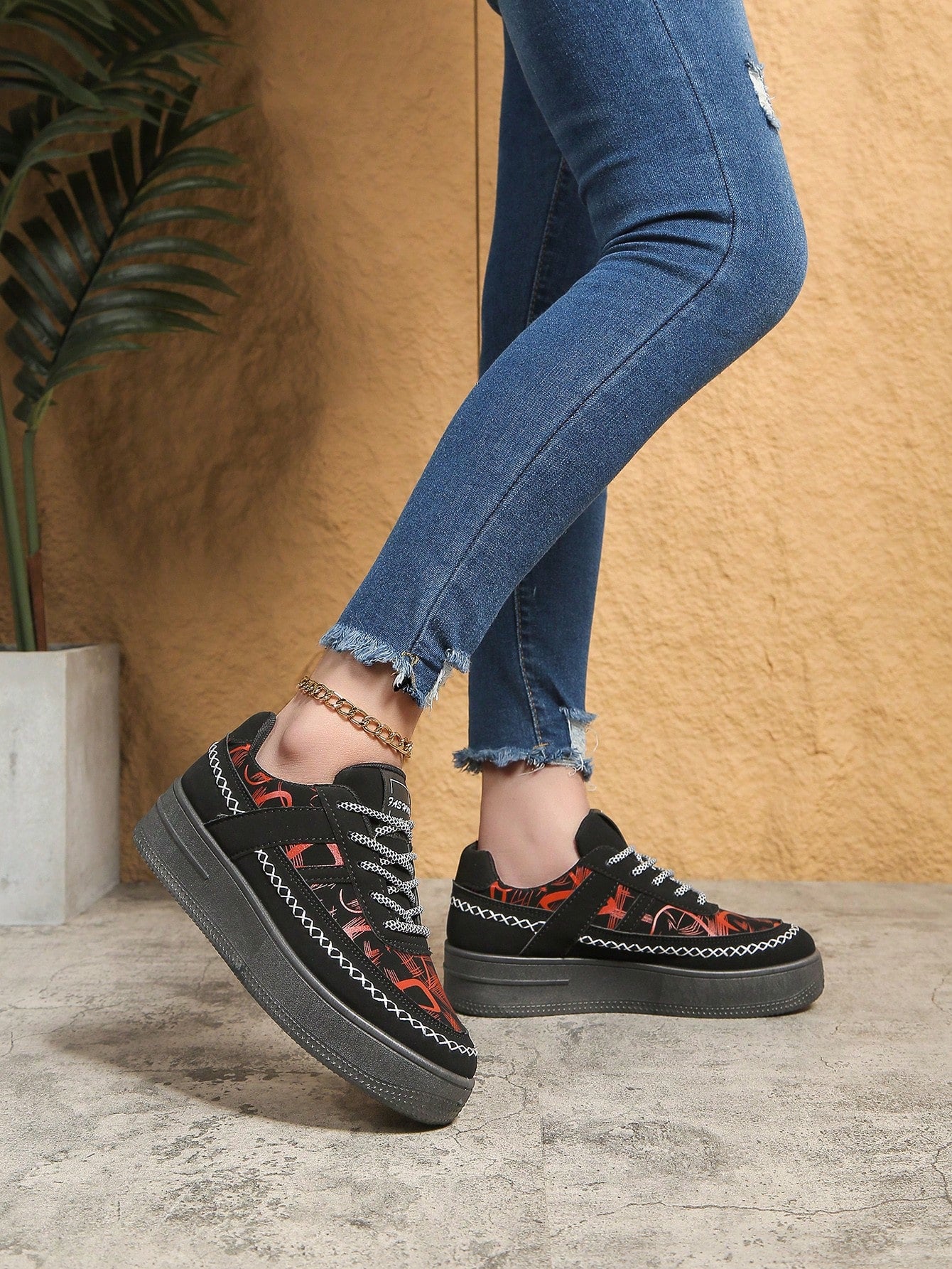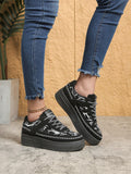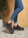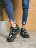 Chic Black Printed Sneakers: Elevate Your Style and Height with Waterproof Platform Casual Shoes