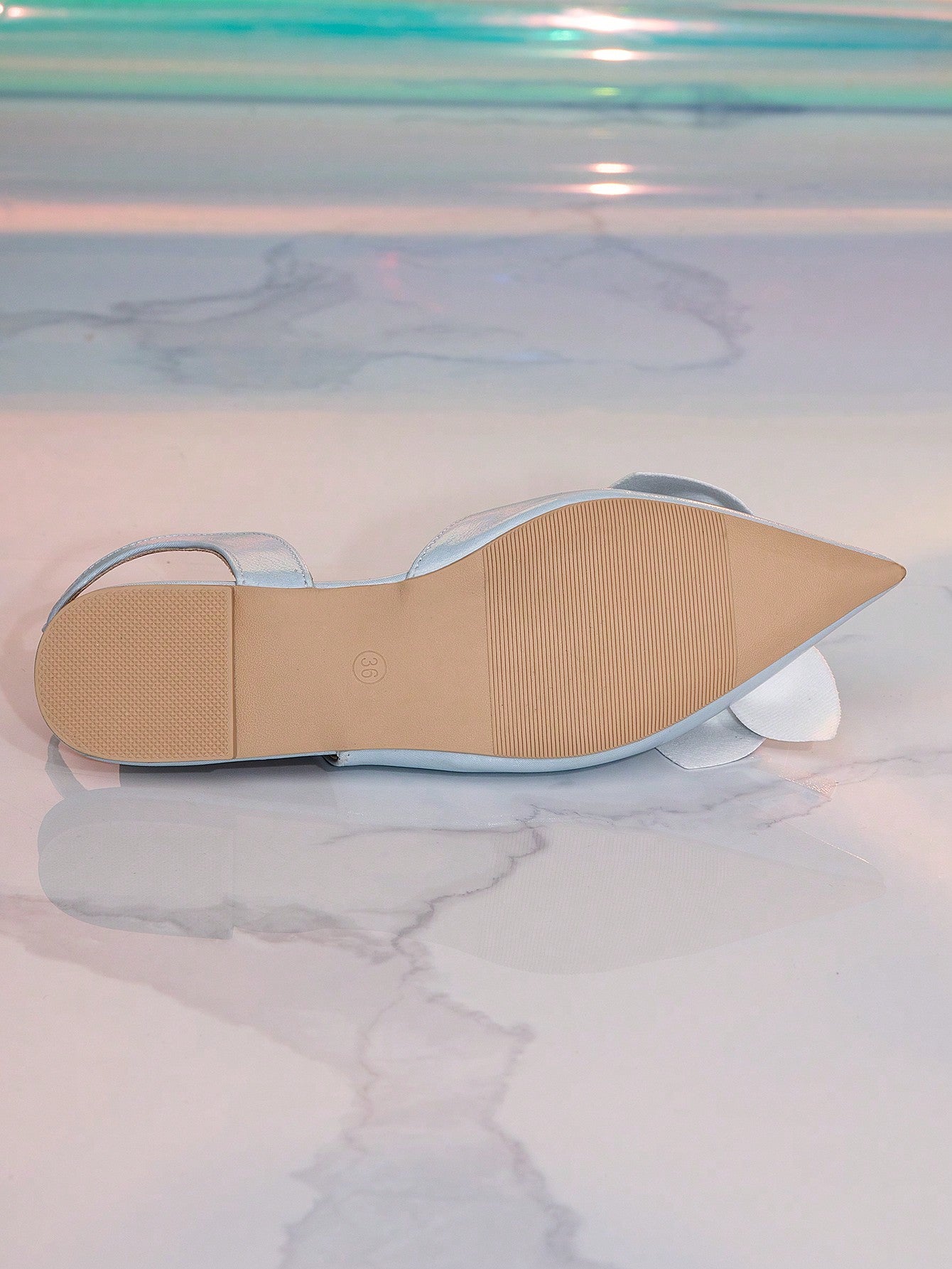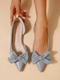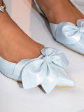 Chic Blue Pointy Toe Flats with Ribbon Bow - Trendy Slip-On Shoes for Autumn