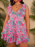 Chic & Bold Plus Size Ruffle Trim Dress for Effortless Vacation Style