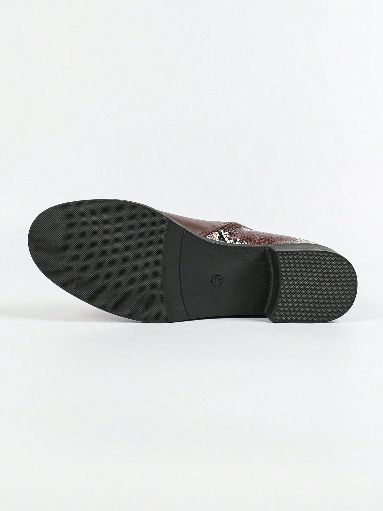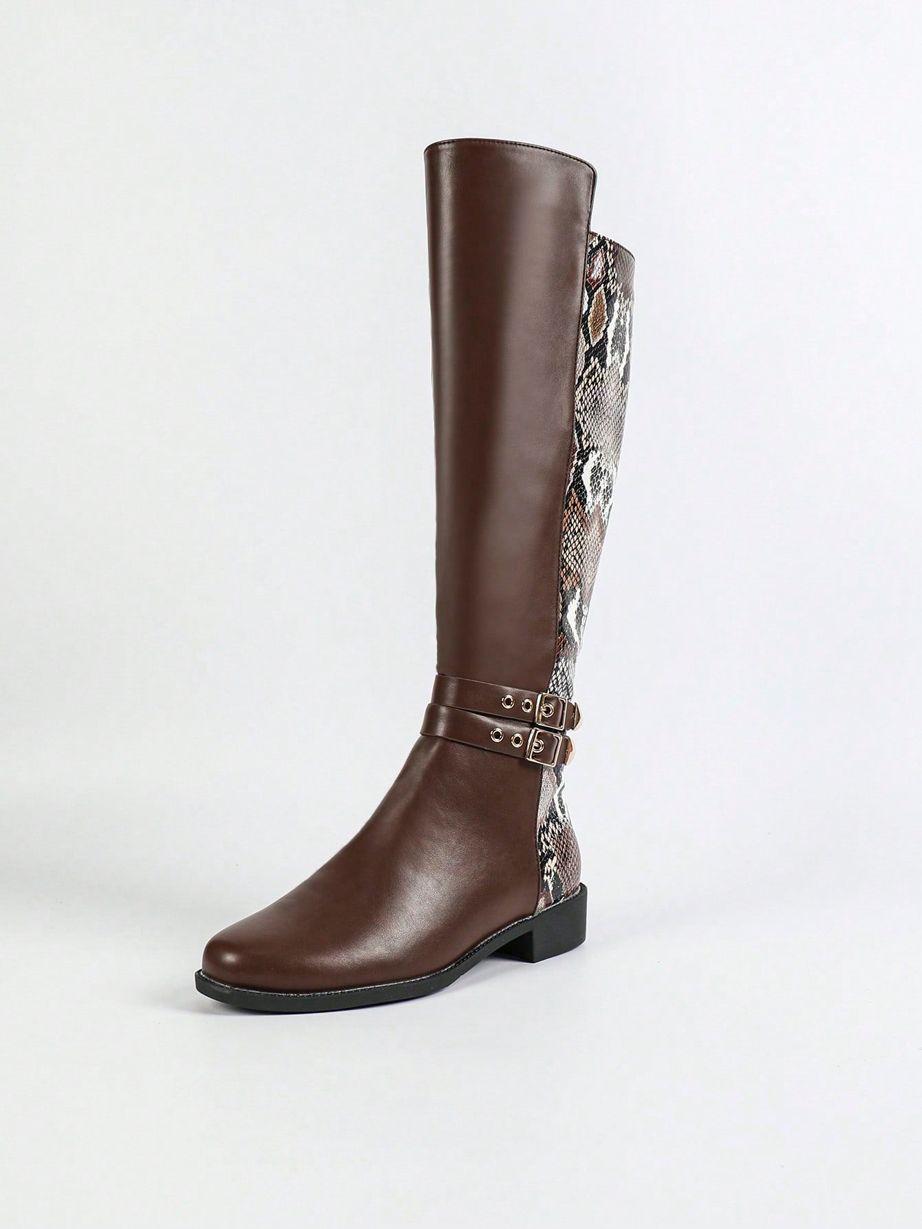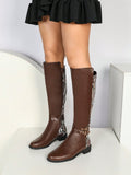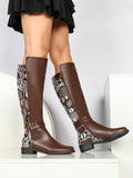 Chic Brown Mid-Calf Boots with Metal Buckle & Side Zipper – Stylish & Comfortable Winter Footwear