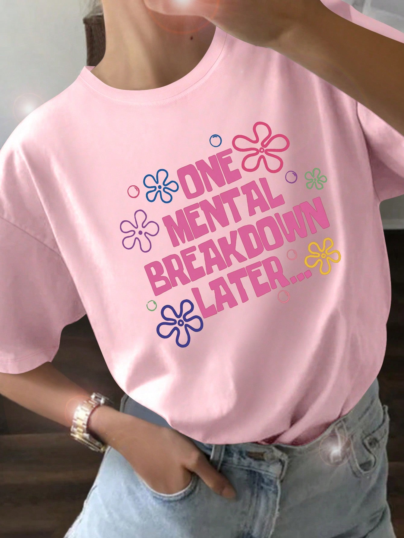 Chic & Casual: Floral and Slogan Print T-Shirt for Effortless Summer Style