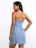 Chic & Casual: Fringe Edge Denim Crop Dress for Effortless Style