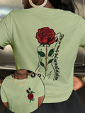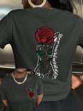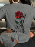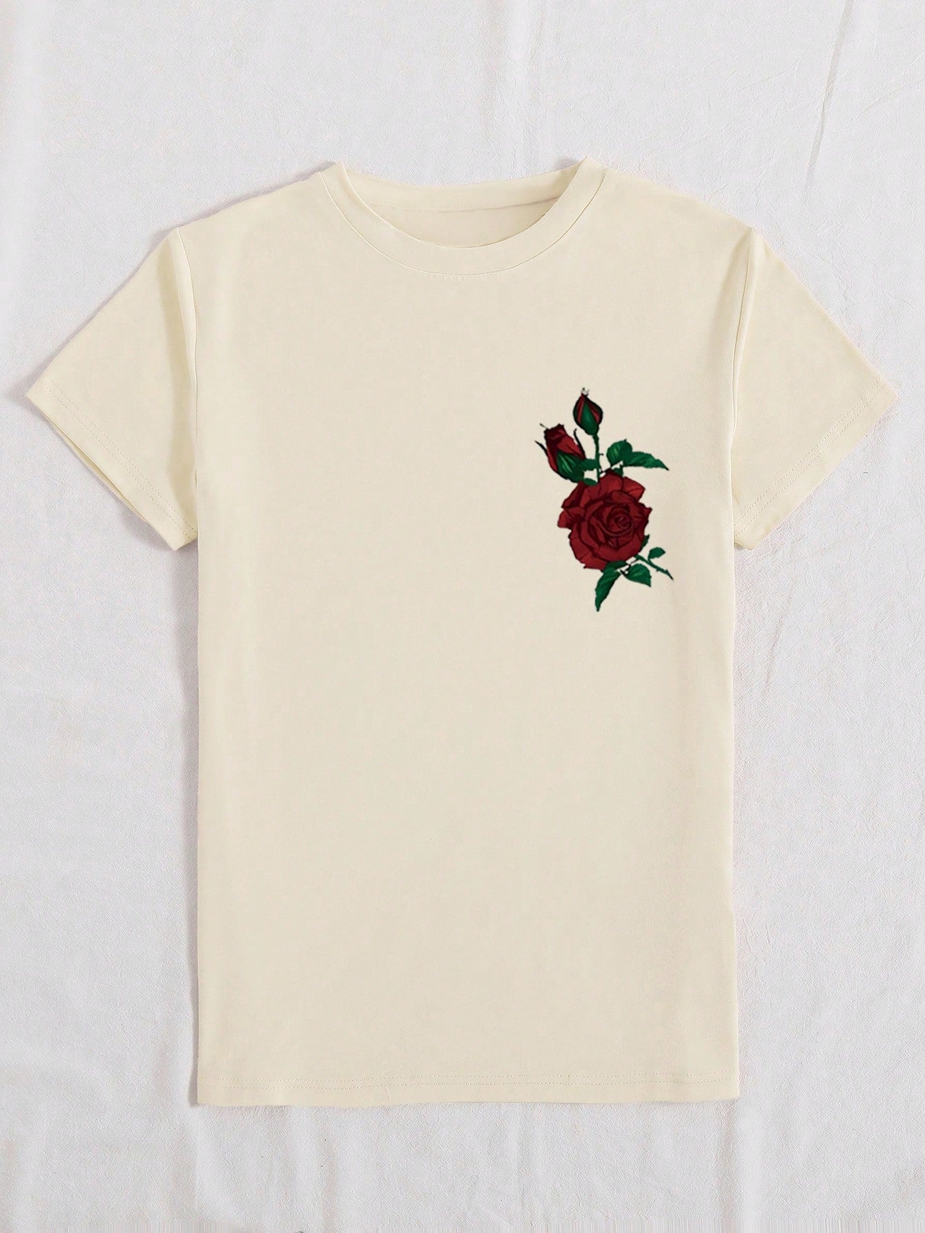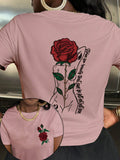 Chic & Casual: Women's Rose Letter Print Short Sleeve T-Shirt