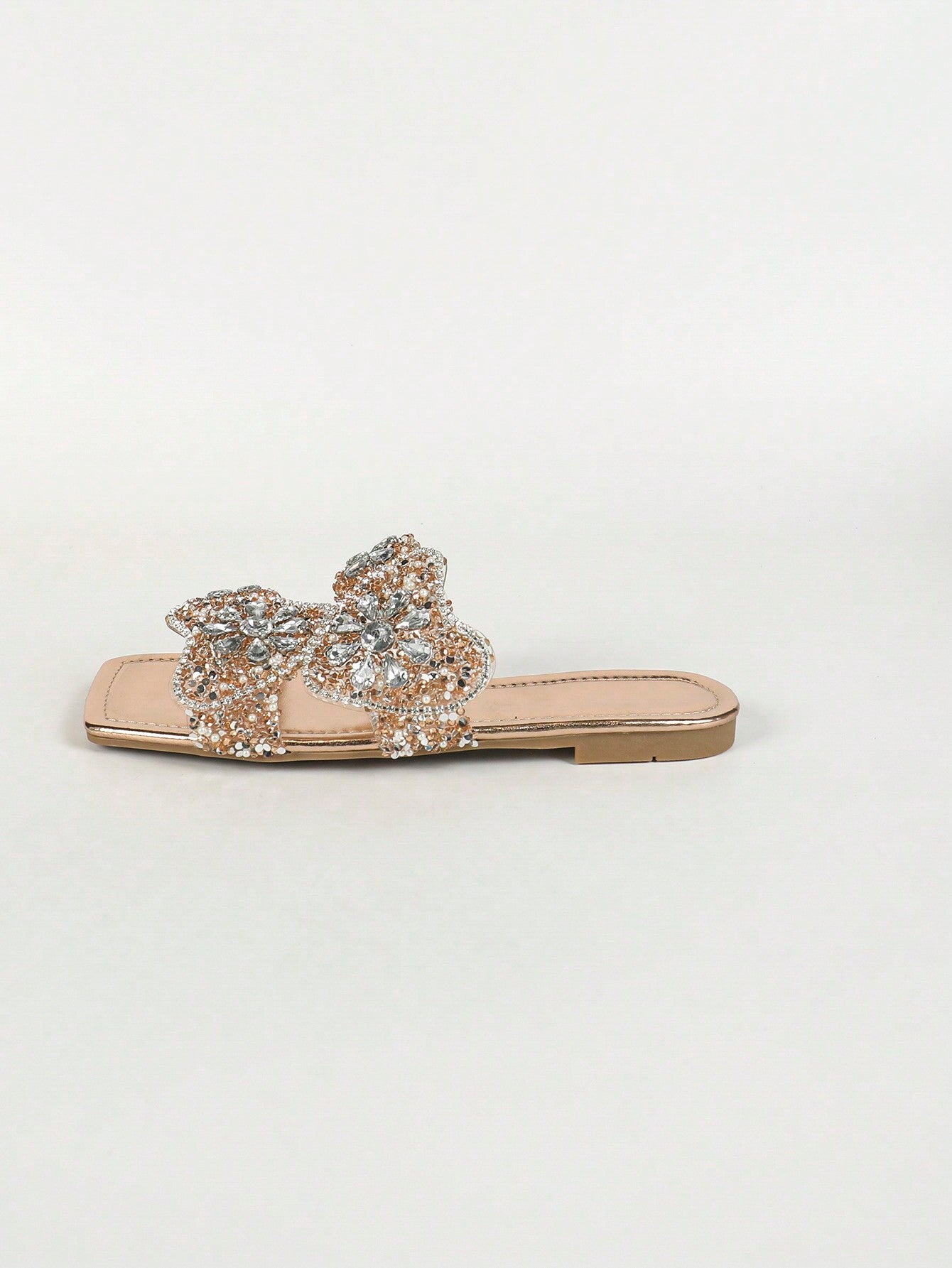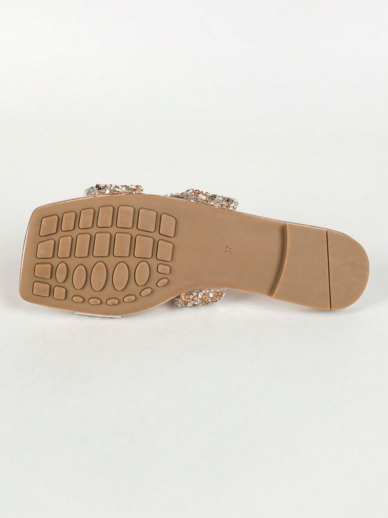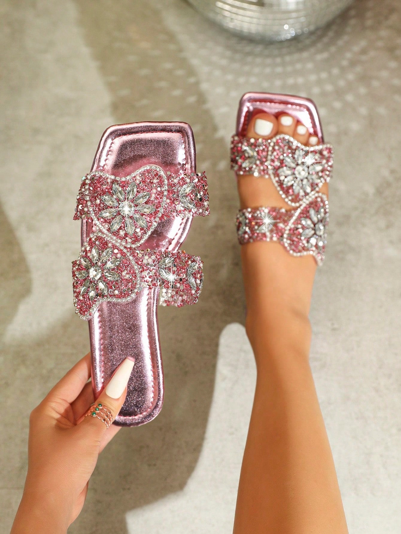 Chic Champagne-Colored Heart Shaped Rhinestone Sandals: Perfect Gifts for Your Lover