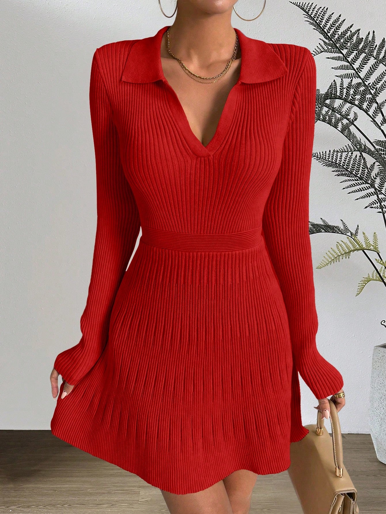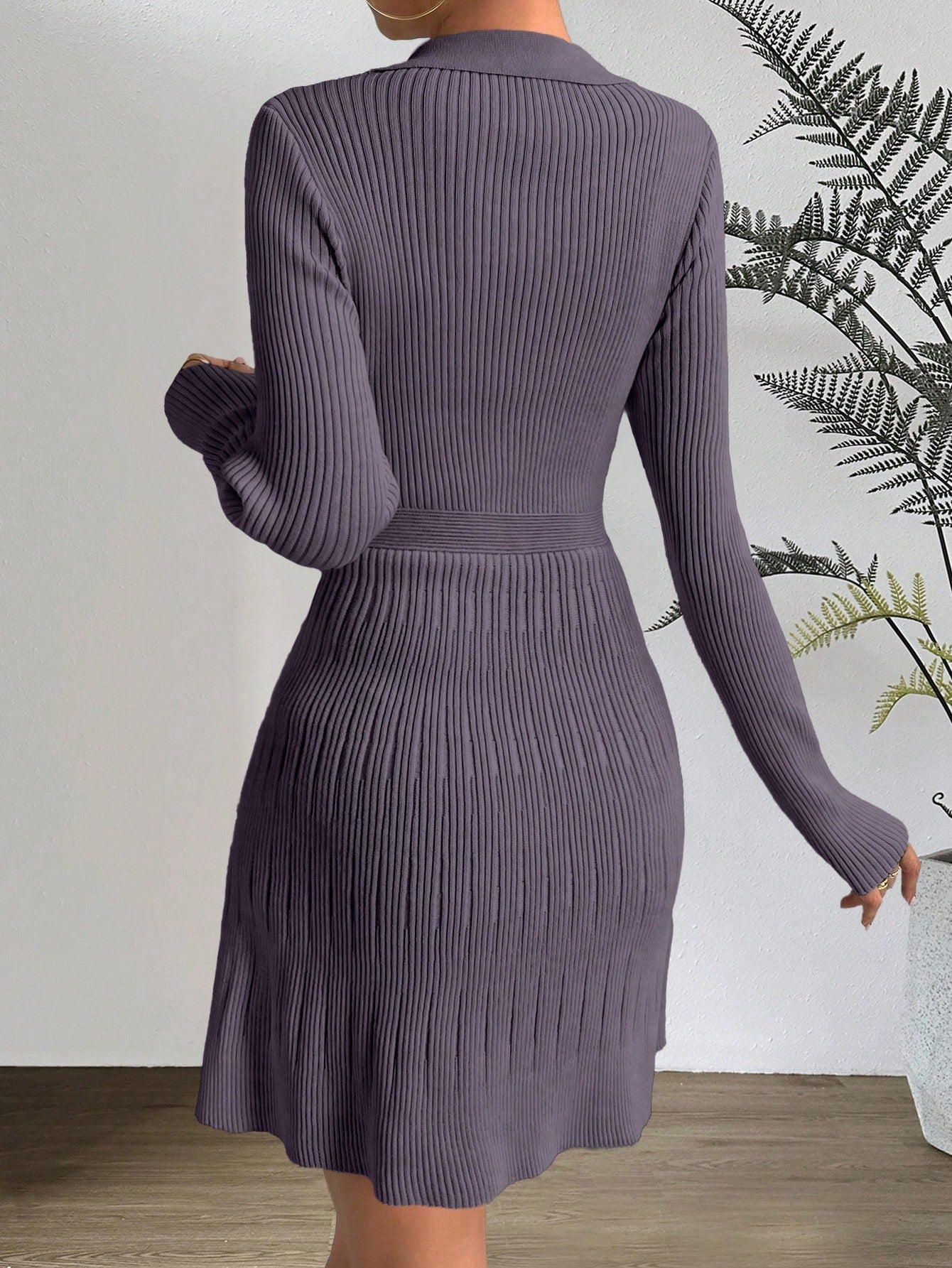 Chic Comfort: Solid Ribbed Knit Sweater Dress