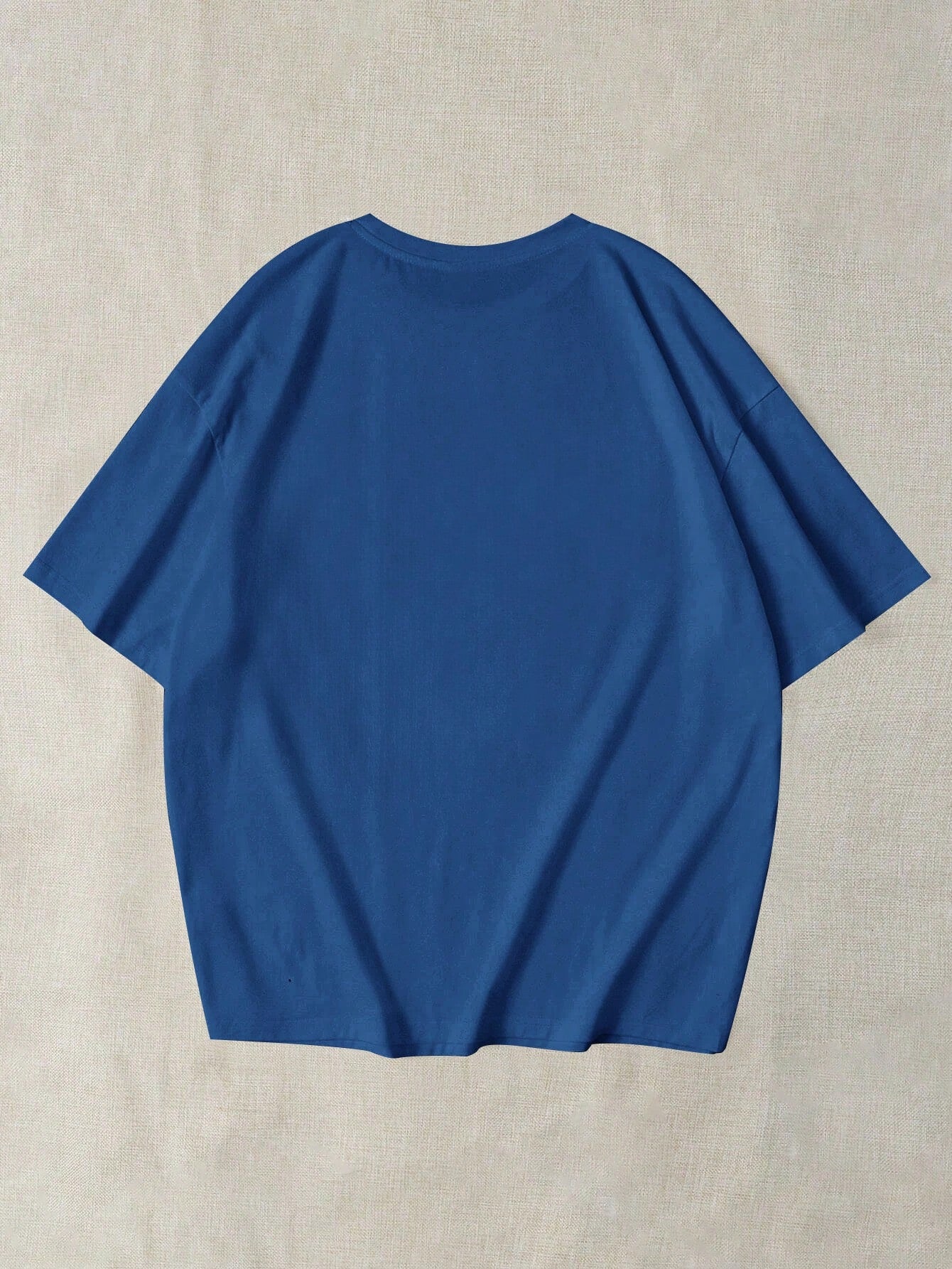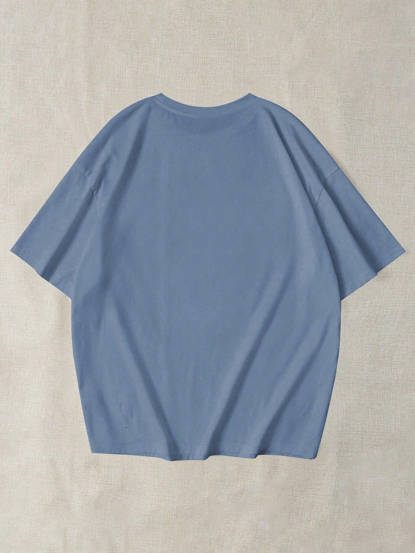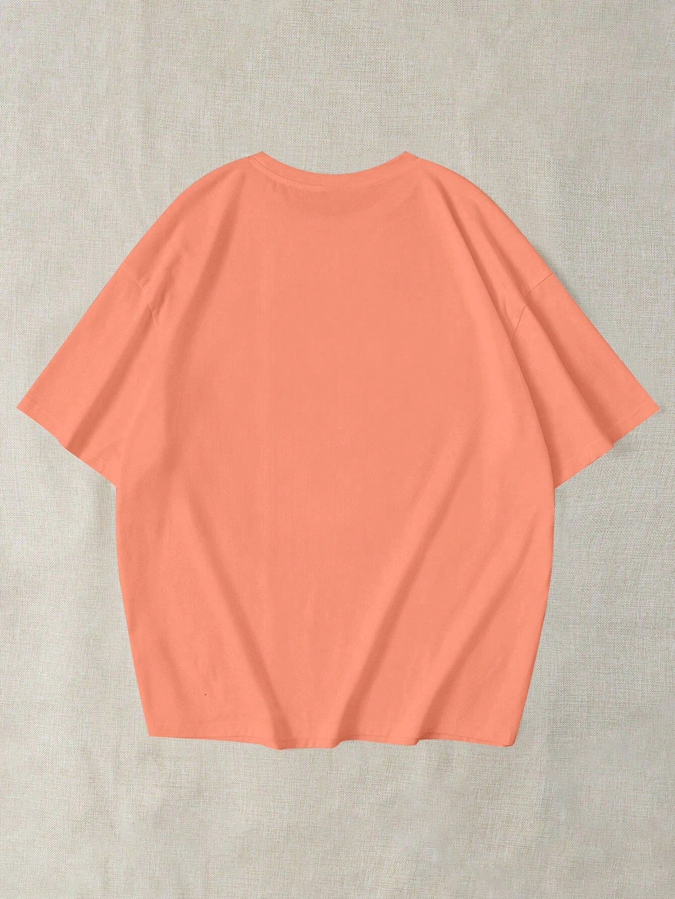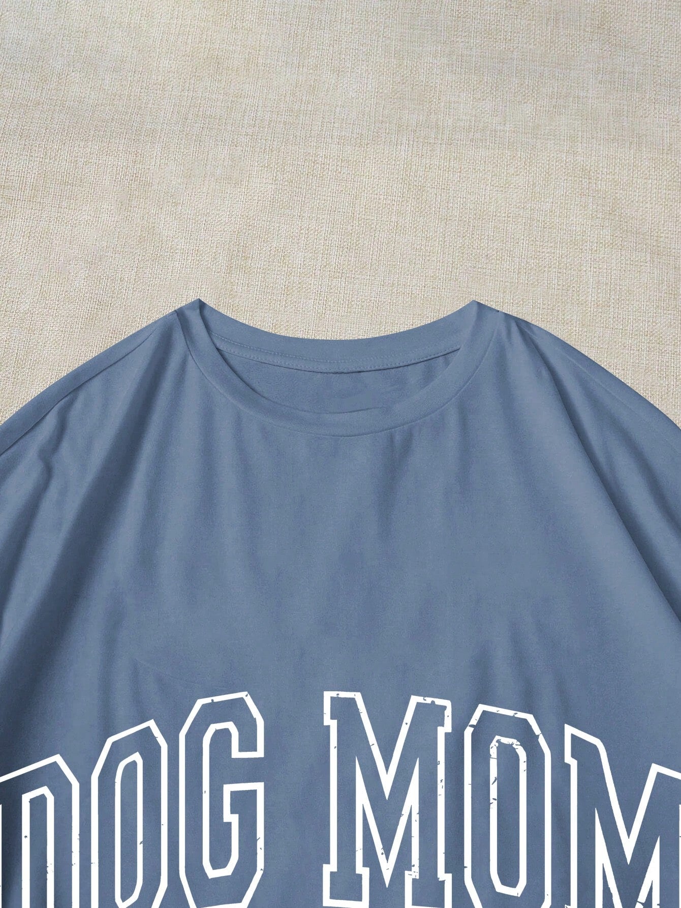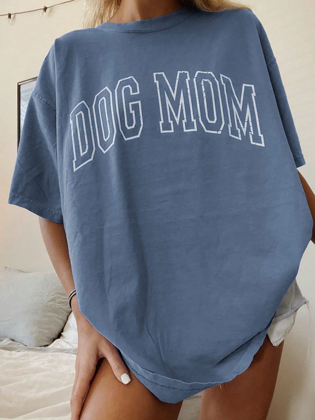 Chic Comfort: Women's Casual Loose T-Shirt with Letter Print and Drop Shoulder Design