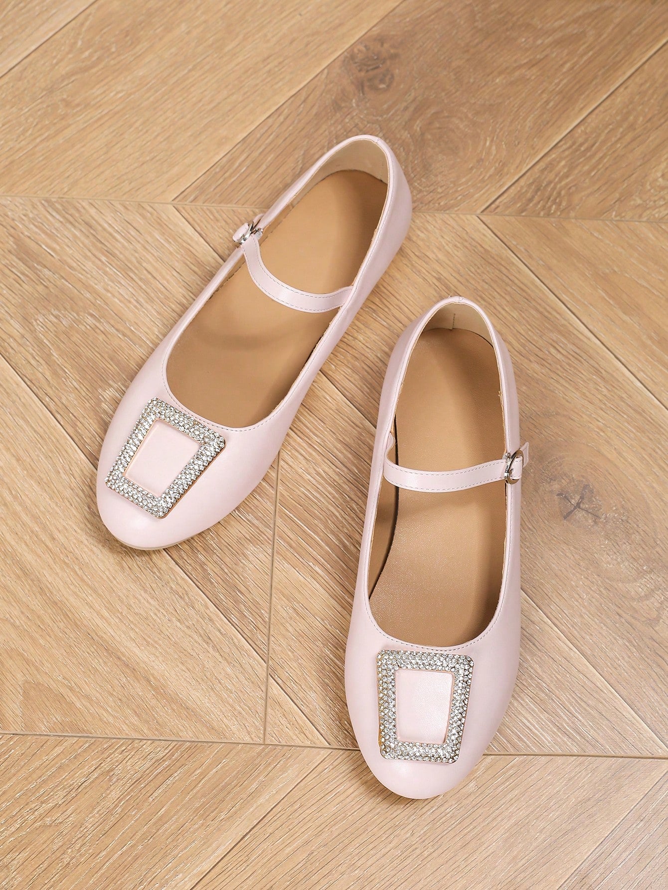 Chic Diamond Buckle Strap Flat Mary Jane Shoes for Women