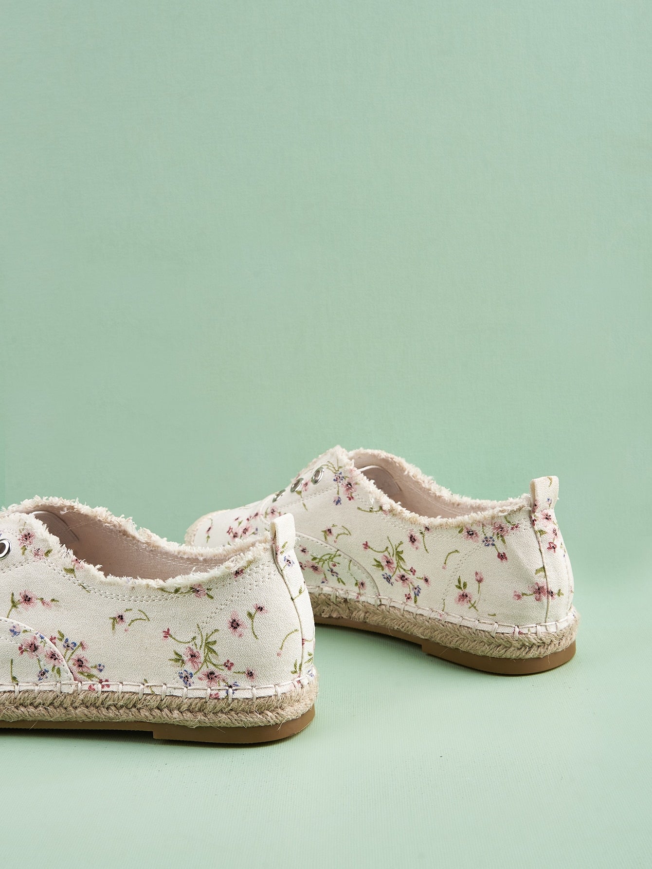 Chic Ditsy Floral Espadrille Flats with Eyelet Detail – Perfect for Vacation Style