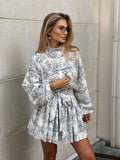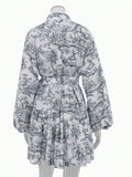 Chic & Effortless: Fashionable Long Sleeve Tie-Waist Dress with Unique Prints