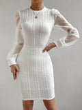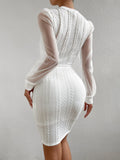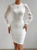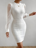 Chic Elegance: Contrast Mesh Lantern Sleeve Bodycon Dress