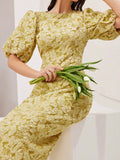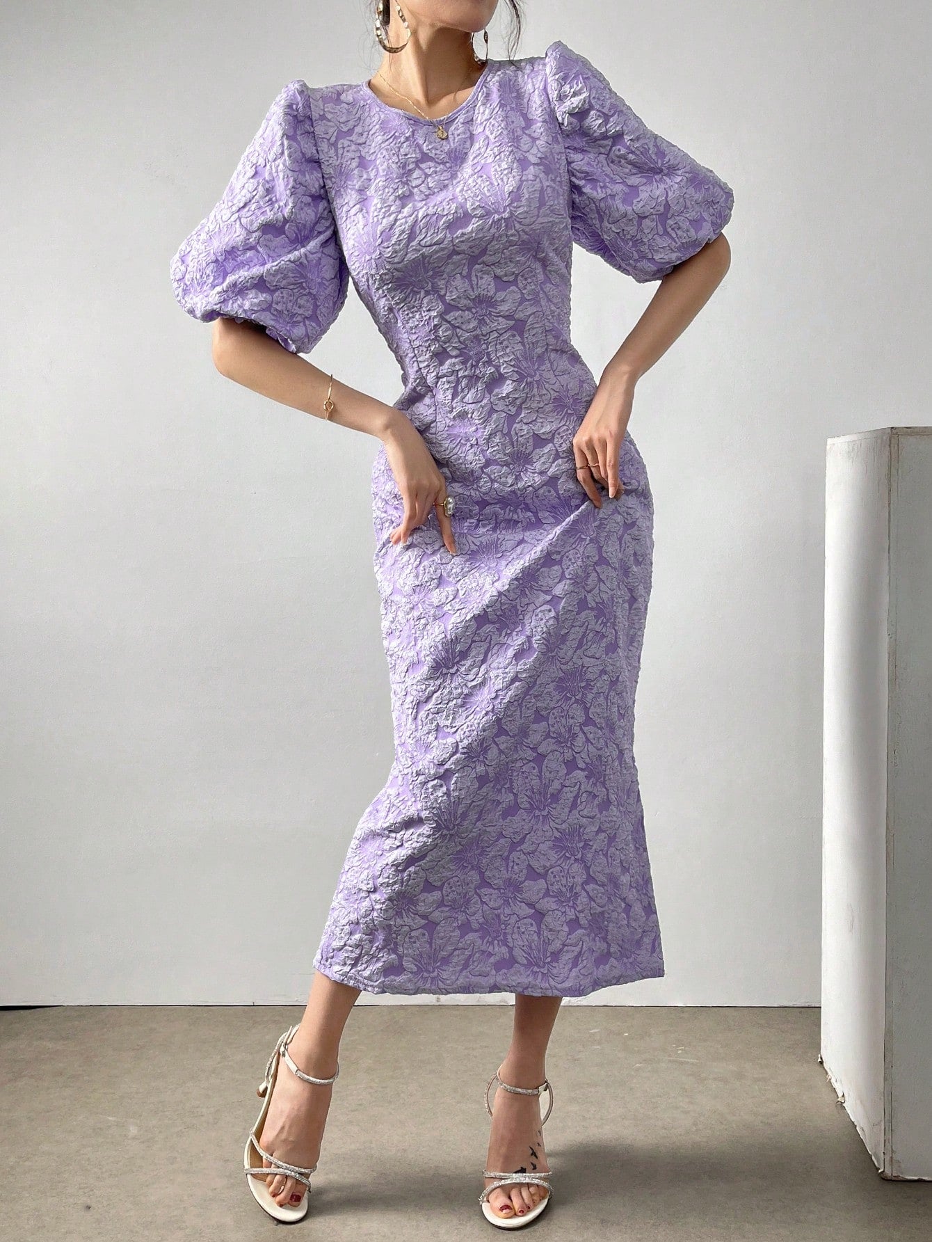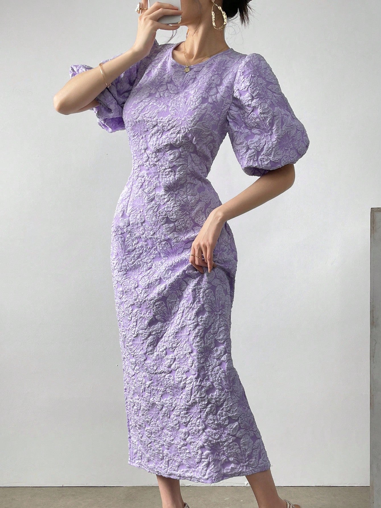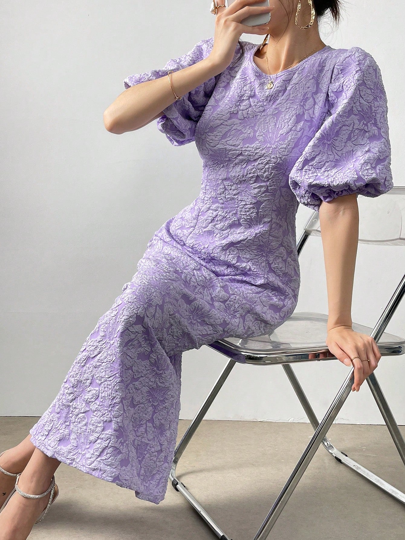 Chic Elegance: Solid Color Lantern Sleeve Dress for Summer