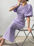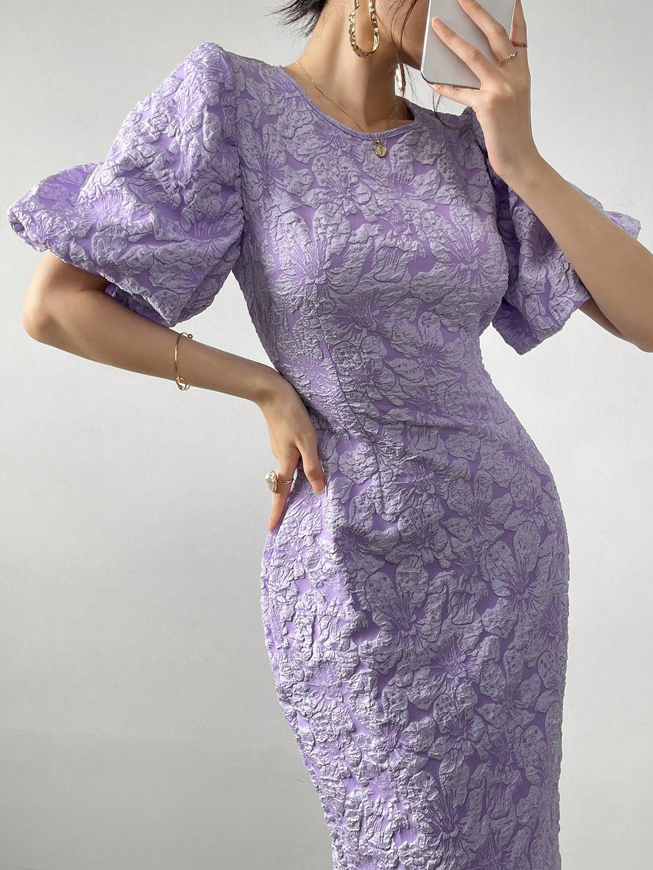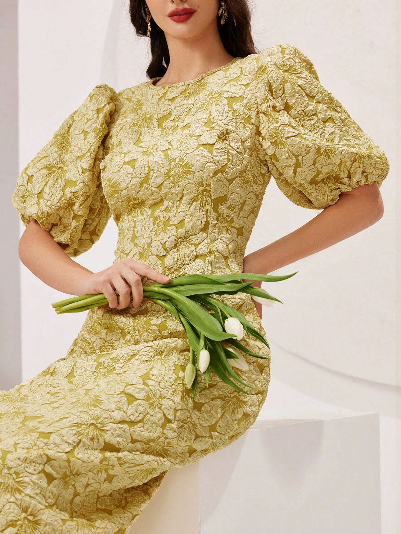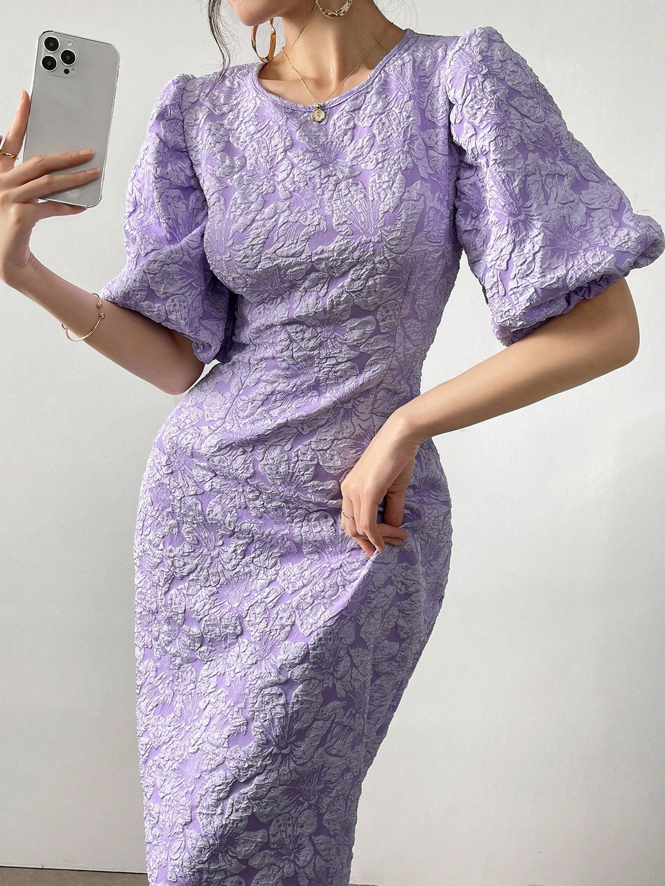 Chic Elegance: Solid Color Lantern Sleeve Dress for Summer