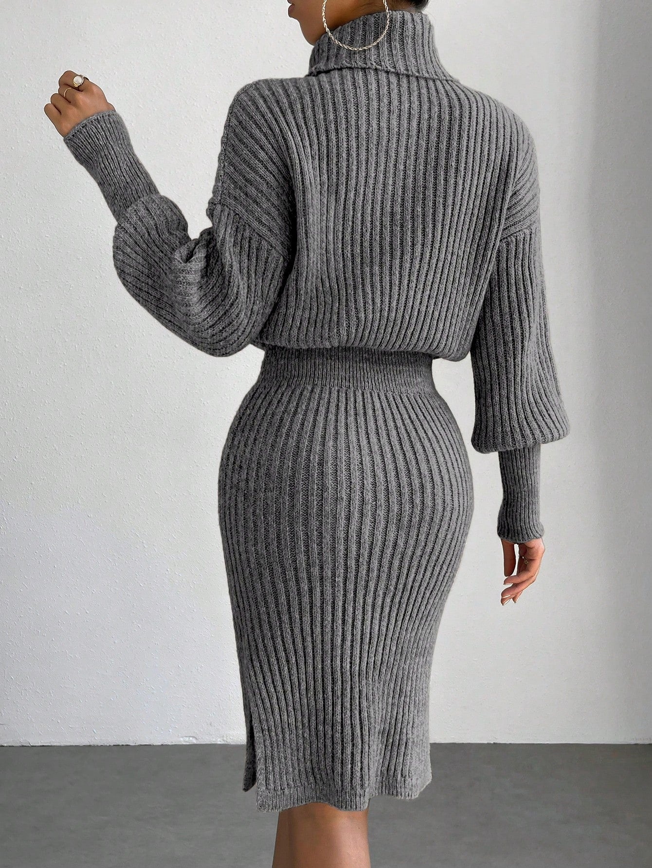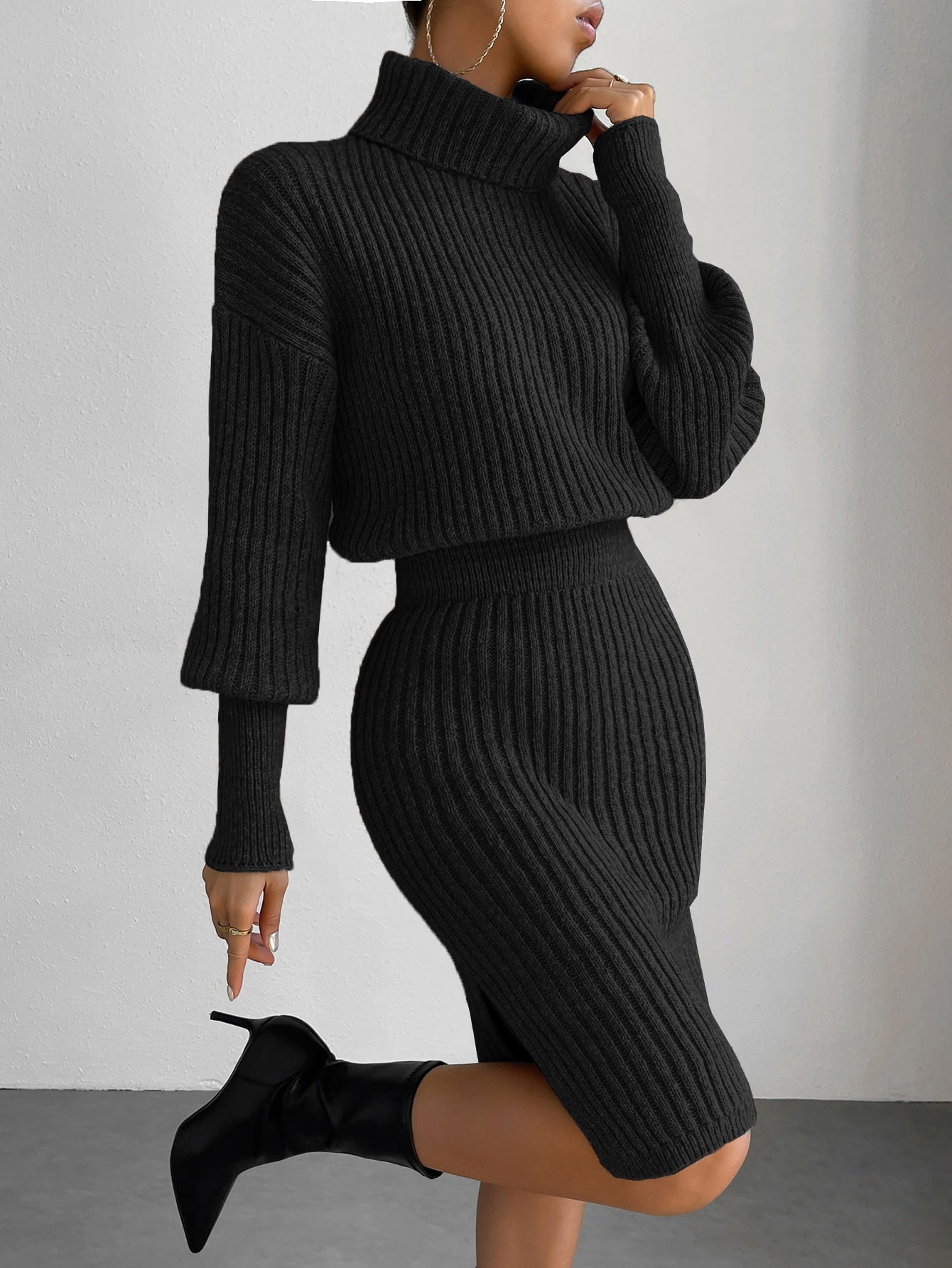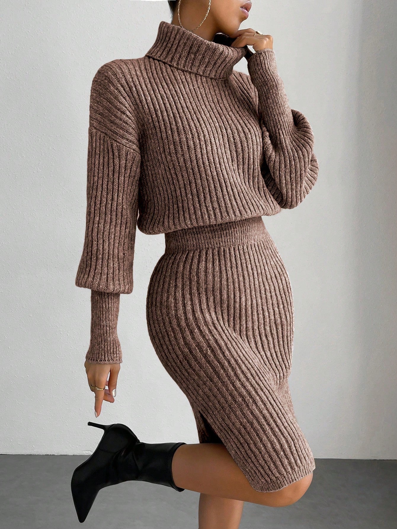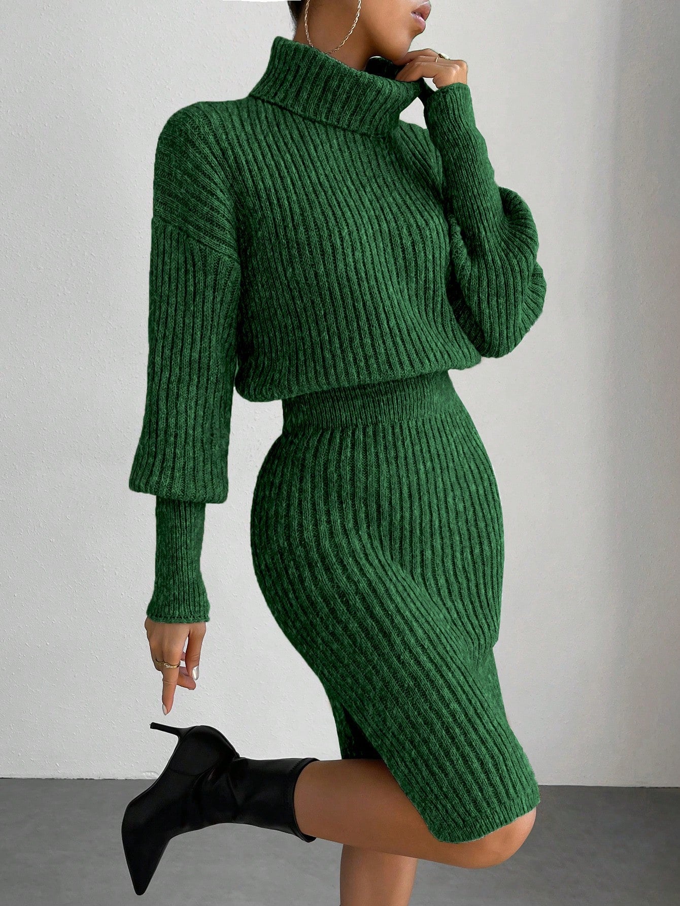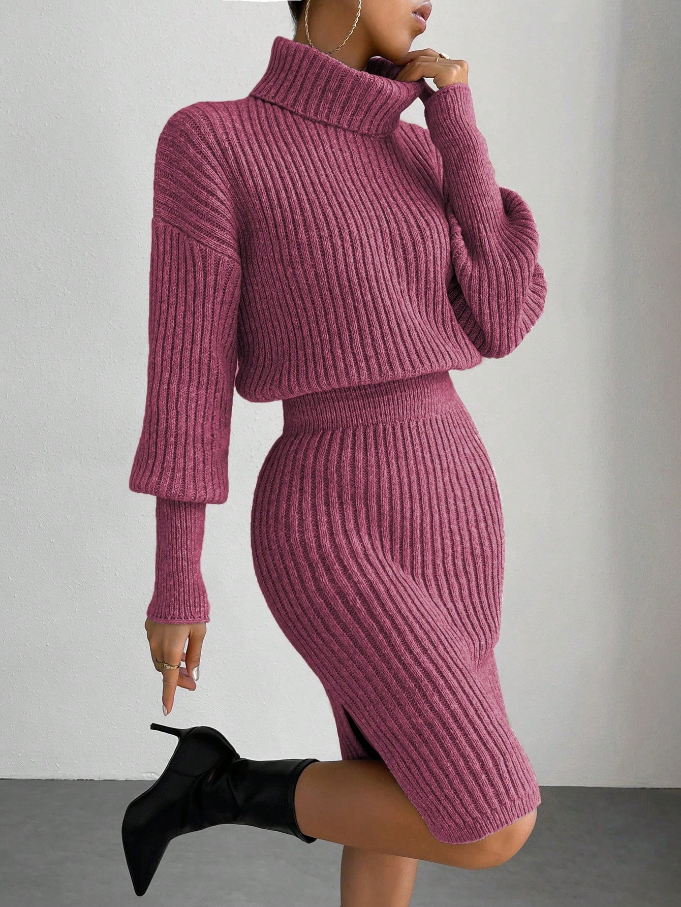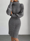 Chic Elegance: Solid Color Turtleneck Slim-Fit Sweater Dress for Autumn & Winter