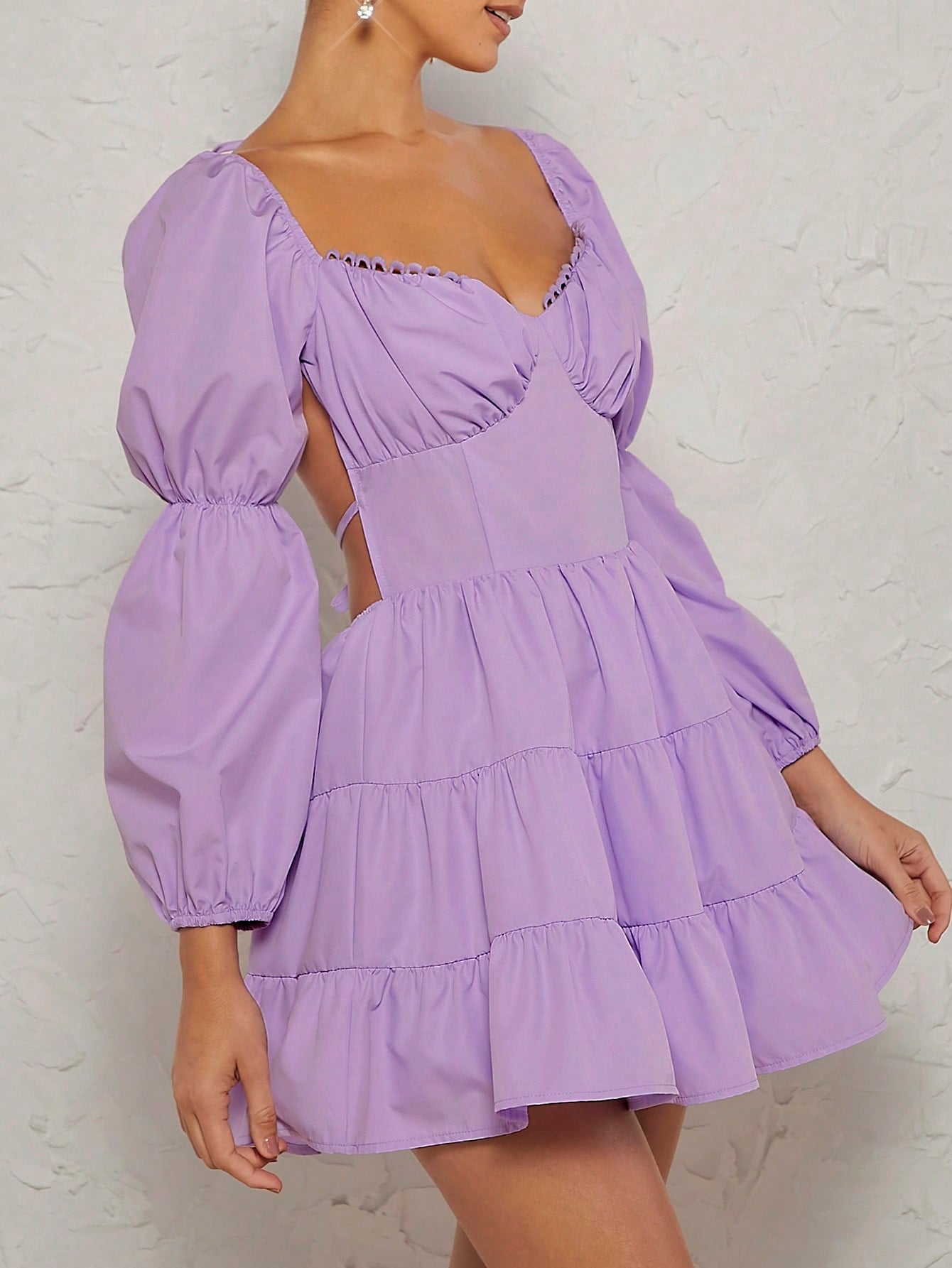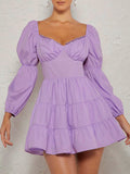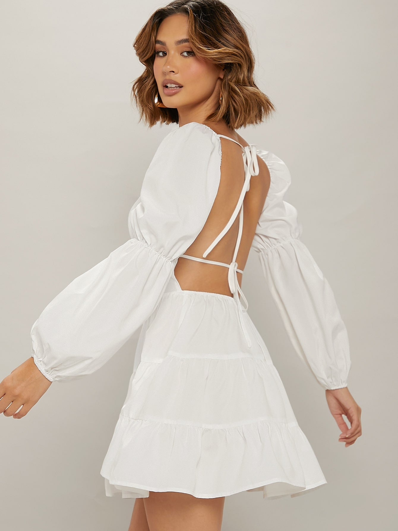Chic & Elegant Backless Ruffle Dress with Lantern Sleeves