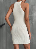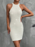 Chic & Elegant Solid Color Pearl Strap Sleeveless Sweater Dress