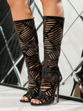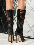 Chic European & American Hollow-Out Booties: Stylish Open-Toe High Heels for Effortless Summer Elegance