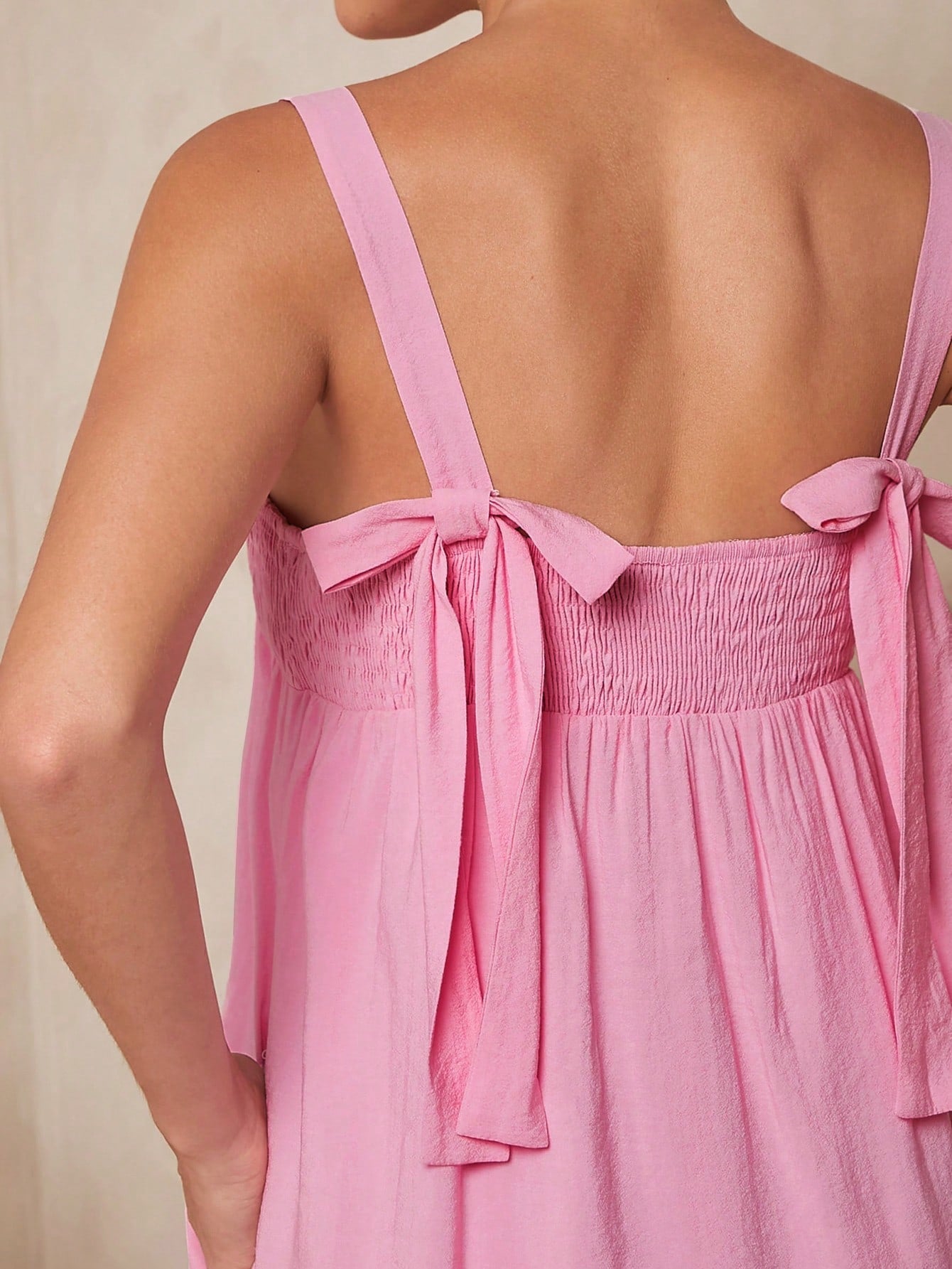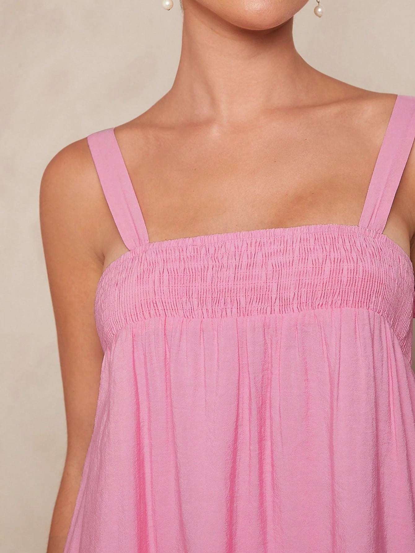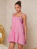 Chic & Flirty: Haute Cute Pink Mini Dress with Smocked Bodice & Wide Straps