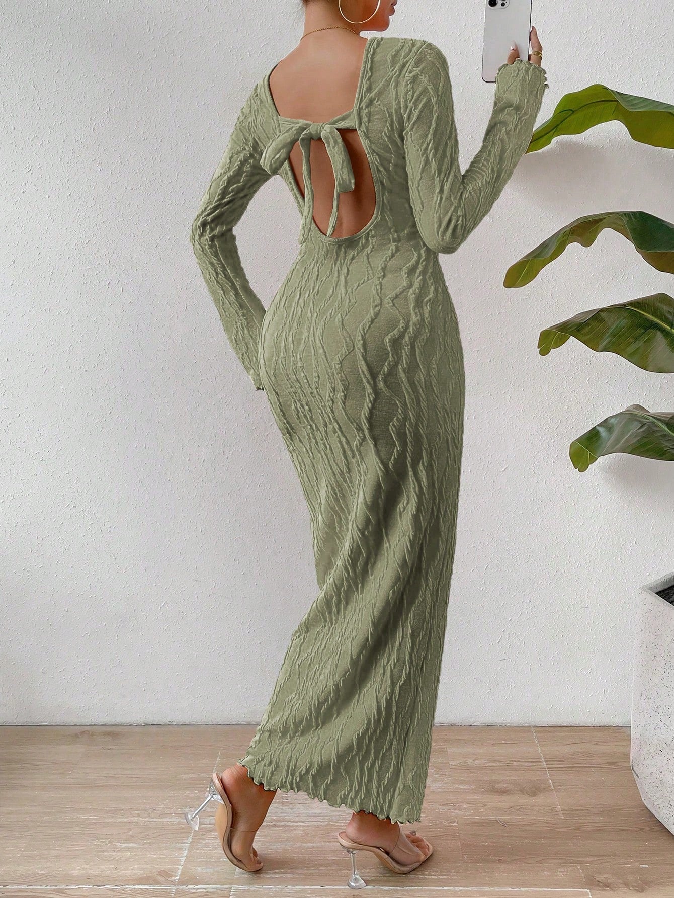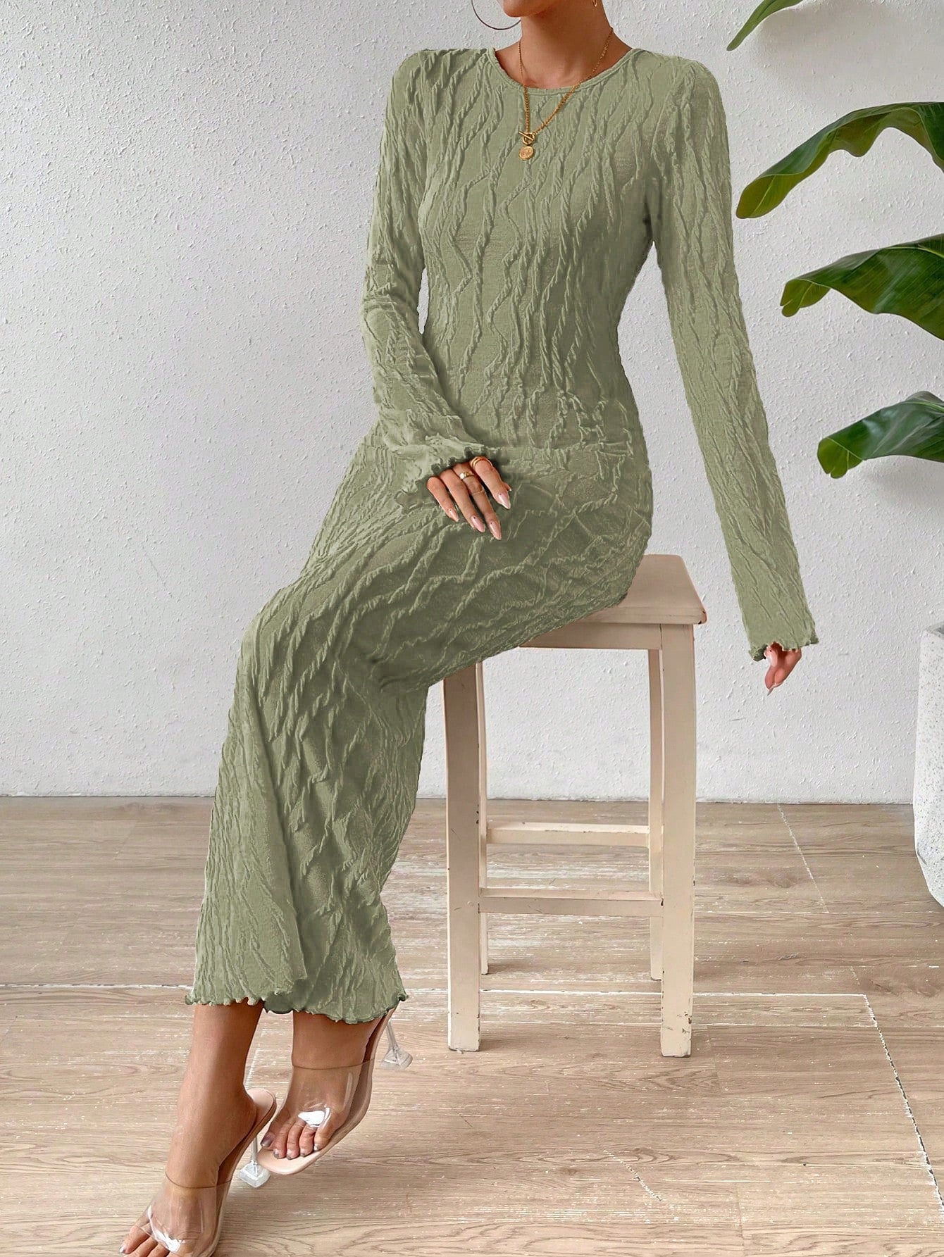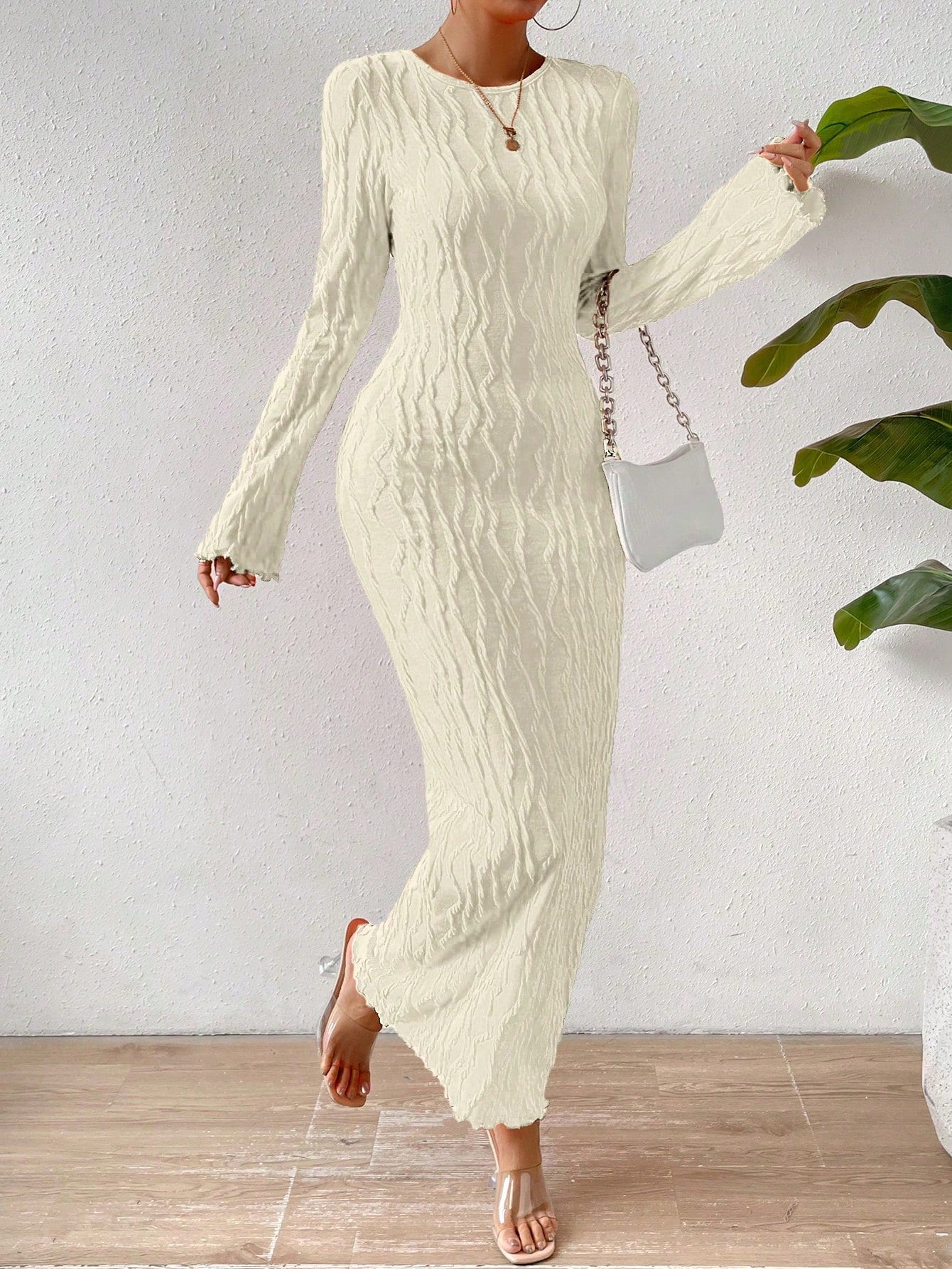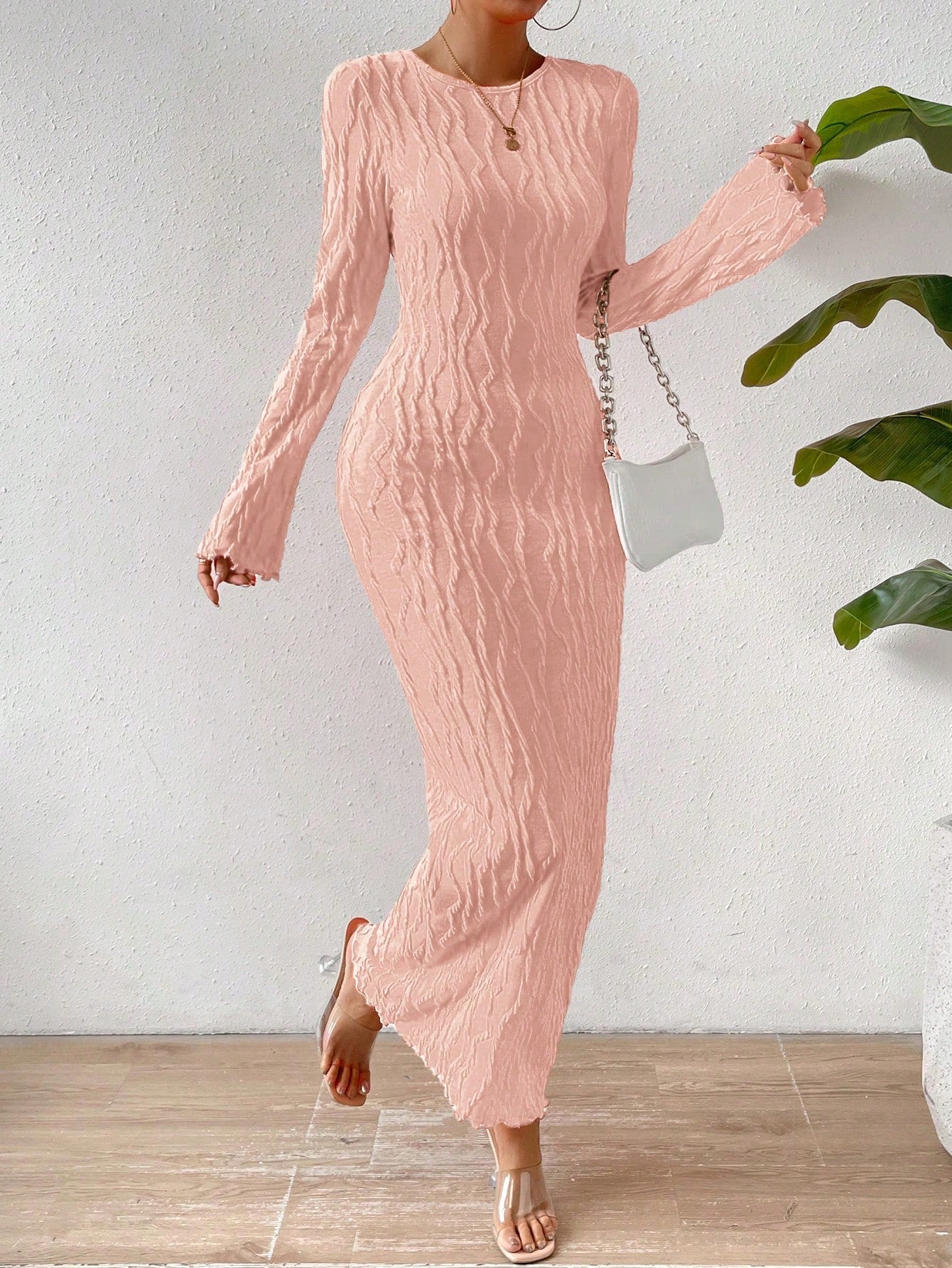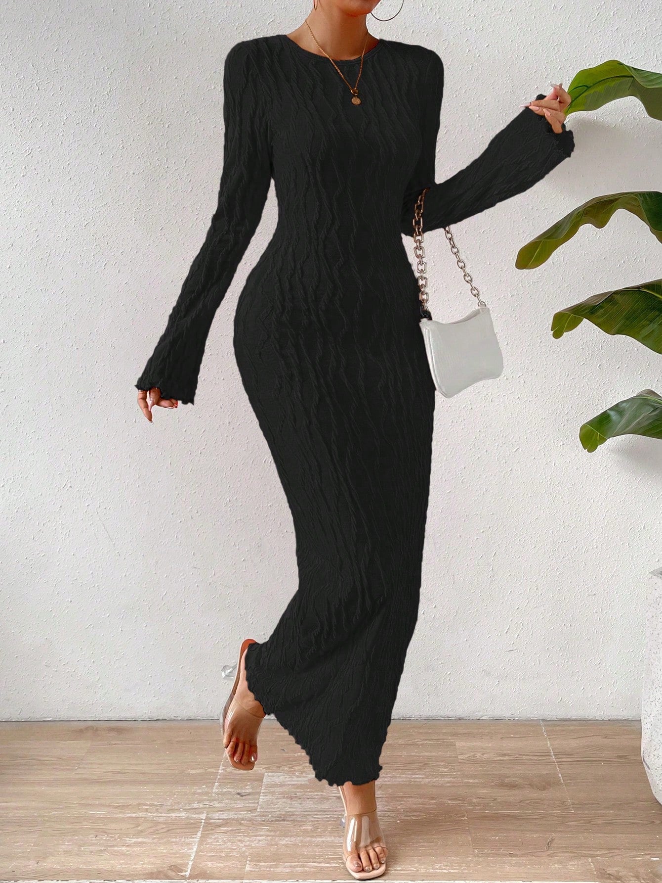Chic & Flirty: Solid Flare Sleeve Bodycon Dress with Lettuce Hem