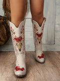 Chic Floral Embroidered Slip-On Wedge Boots - Versatile & Trendy Comfort