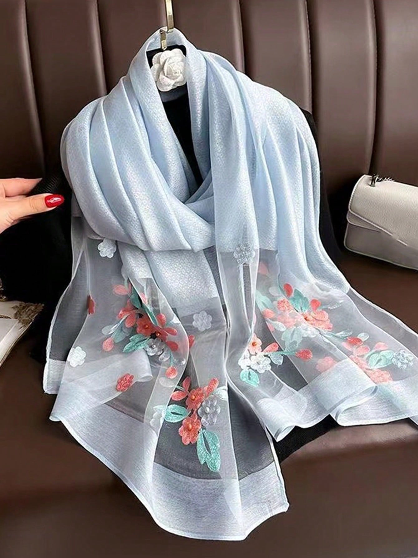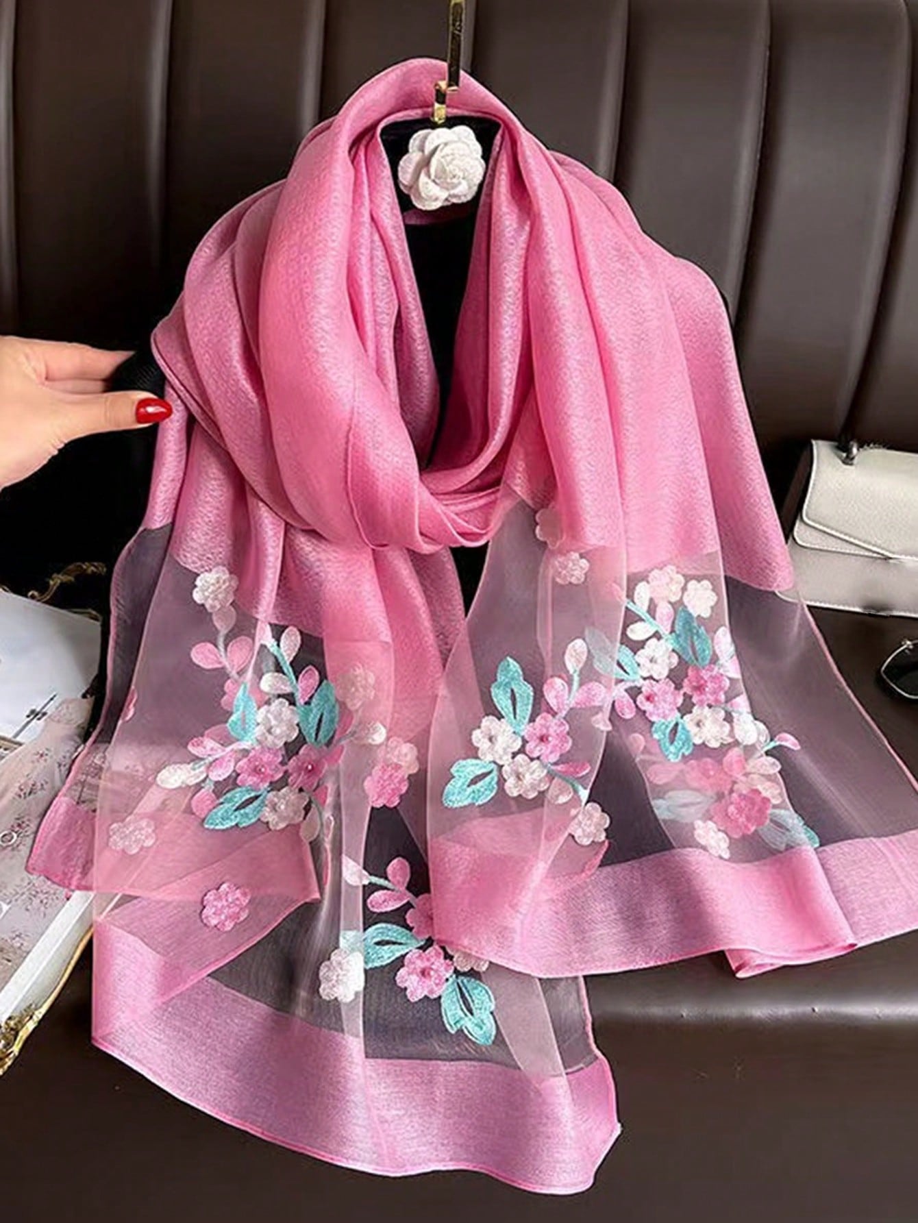 Chic Floral Embroidery Long Scarf - Versatile Accessory for Festivals, Parties, and Everyday Elegance