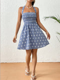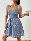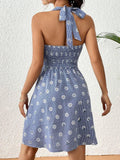 Chic Floral Gingham Tie-Back Halter Sundress for Effortless Summer Style