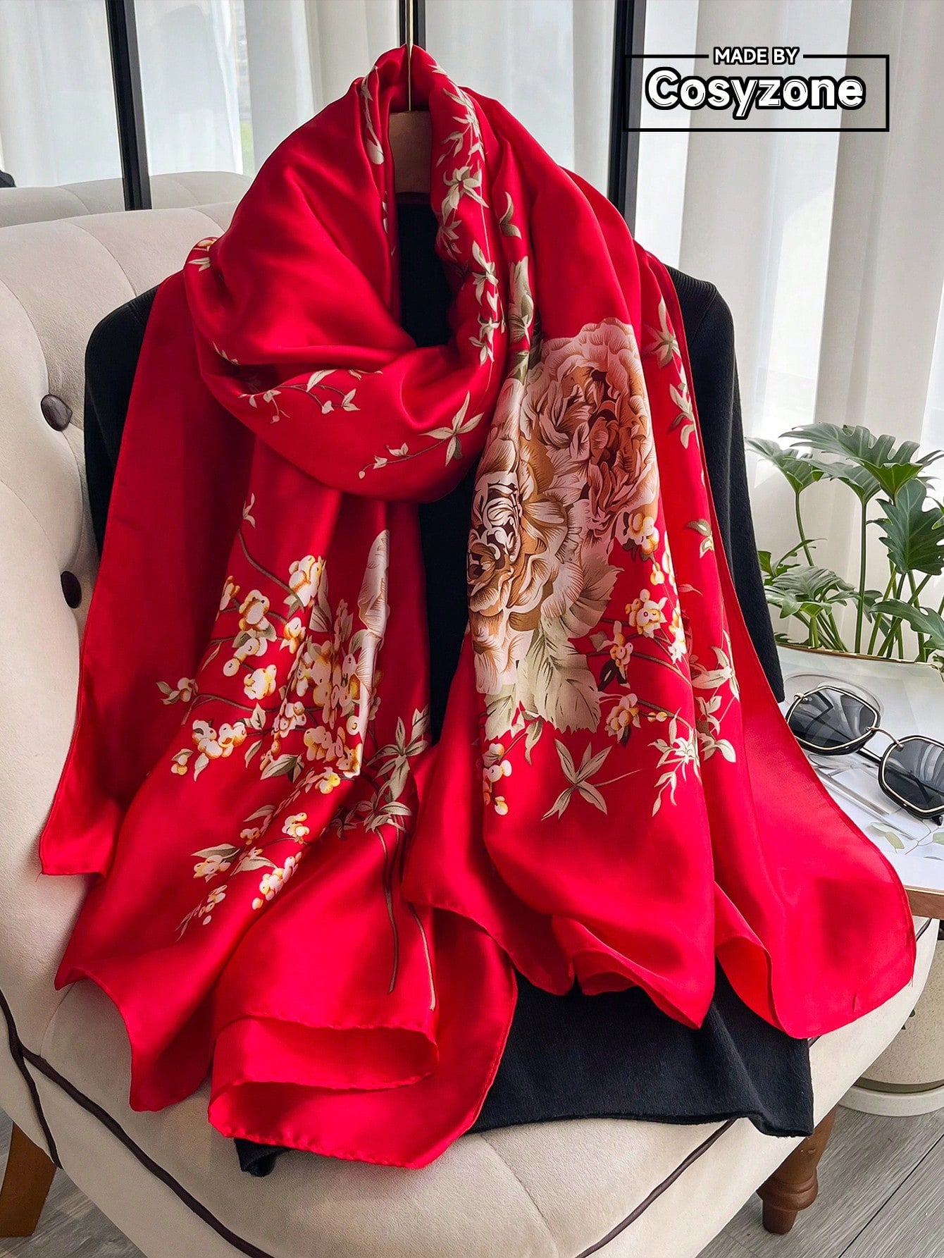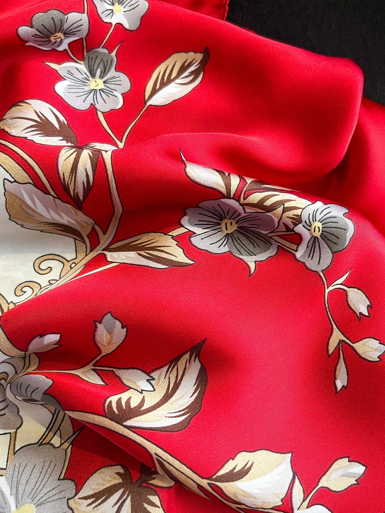 Chic Floral Printed Imitation Silk Scarf for Women: Ideal for Beach Vacations and Sun Protection