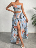 Chic Floral Wrap Cami & Side Knot Skirt Set - Perfect for Summer Days!