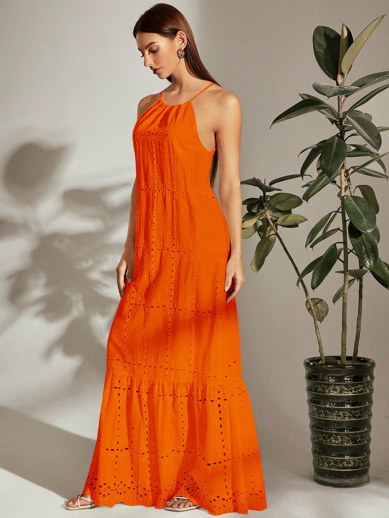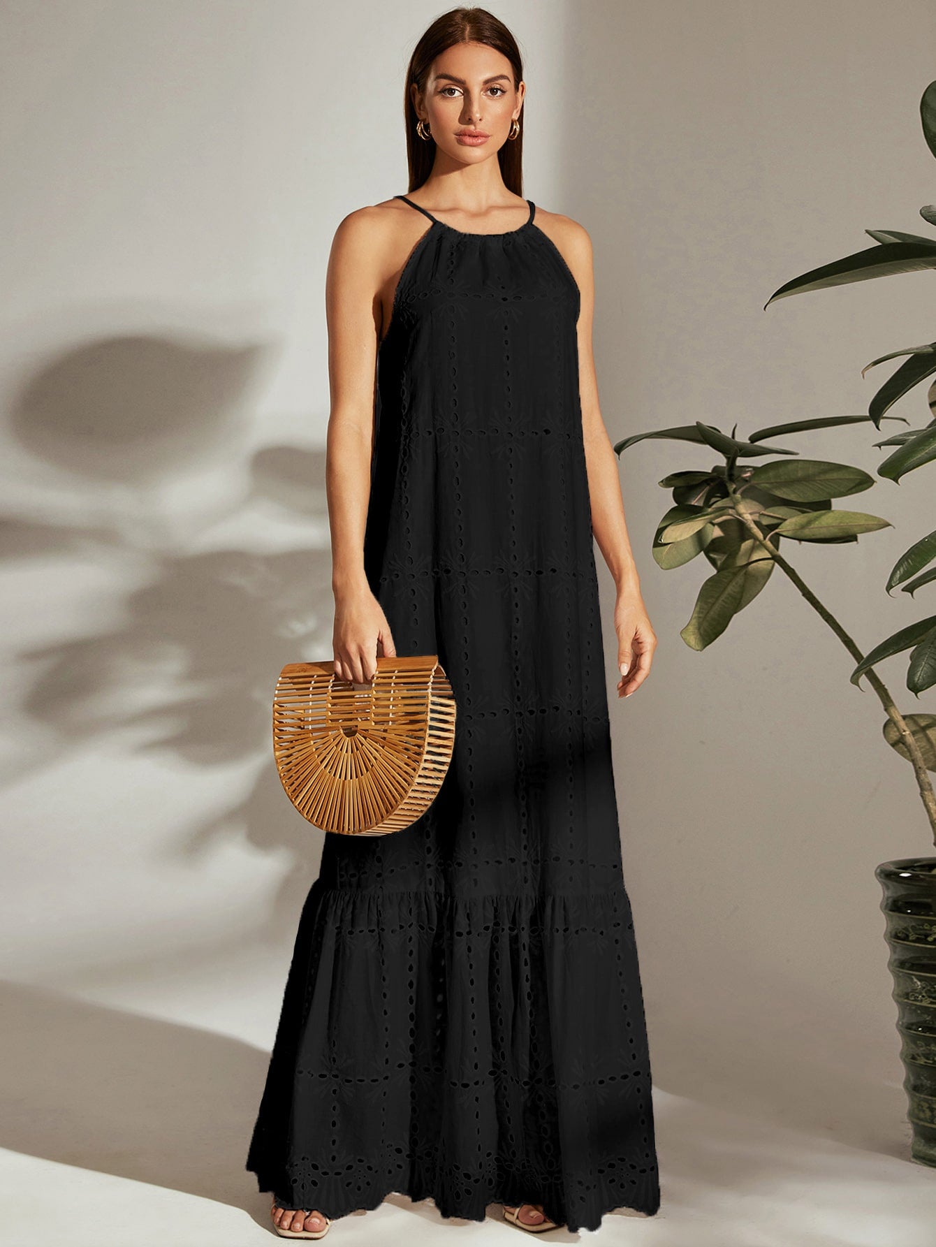 Chic Frenchy Hollow Embroidered Halter Neck Dress - Perfect for Effortless Elegance