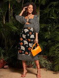 Chic Geo-Print Cut-Out Lantern Sleeve Dress – Perfect for Any Occasion
