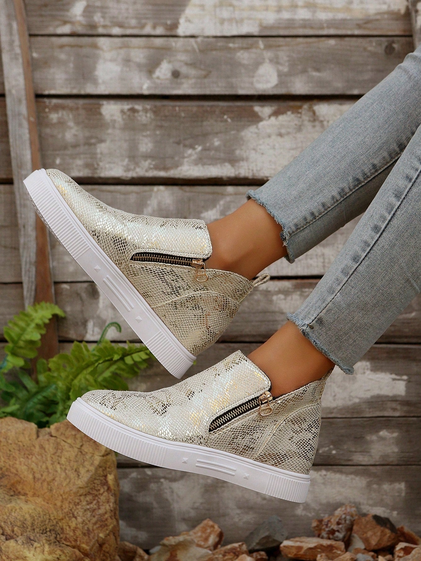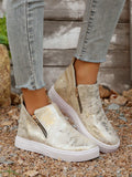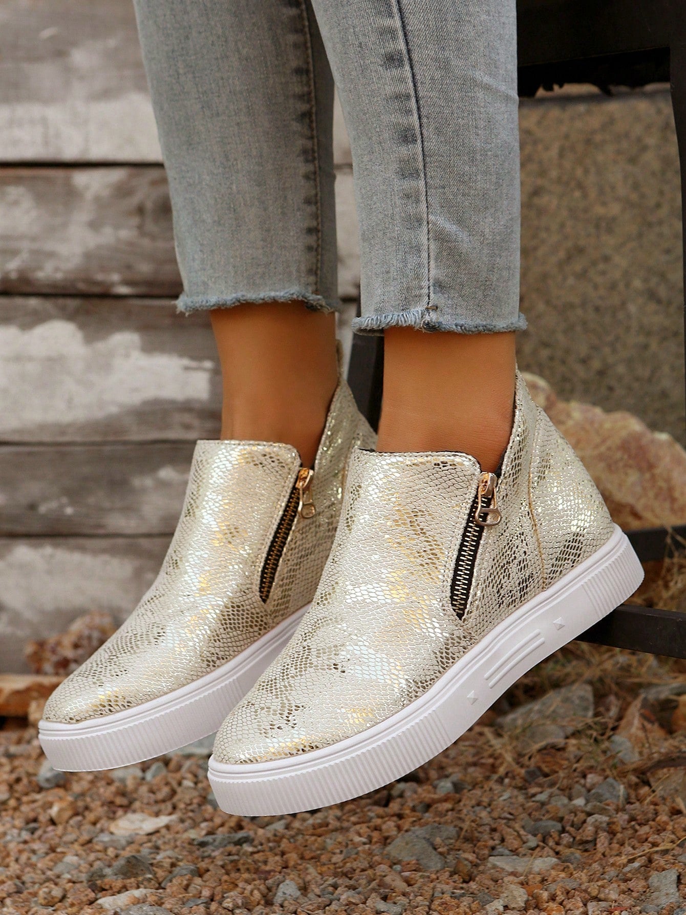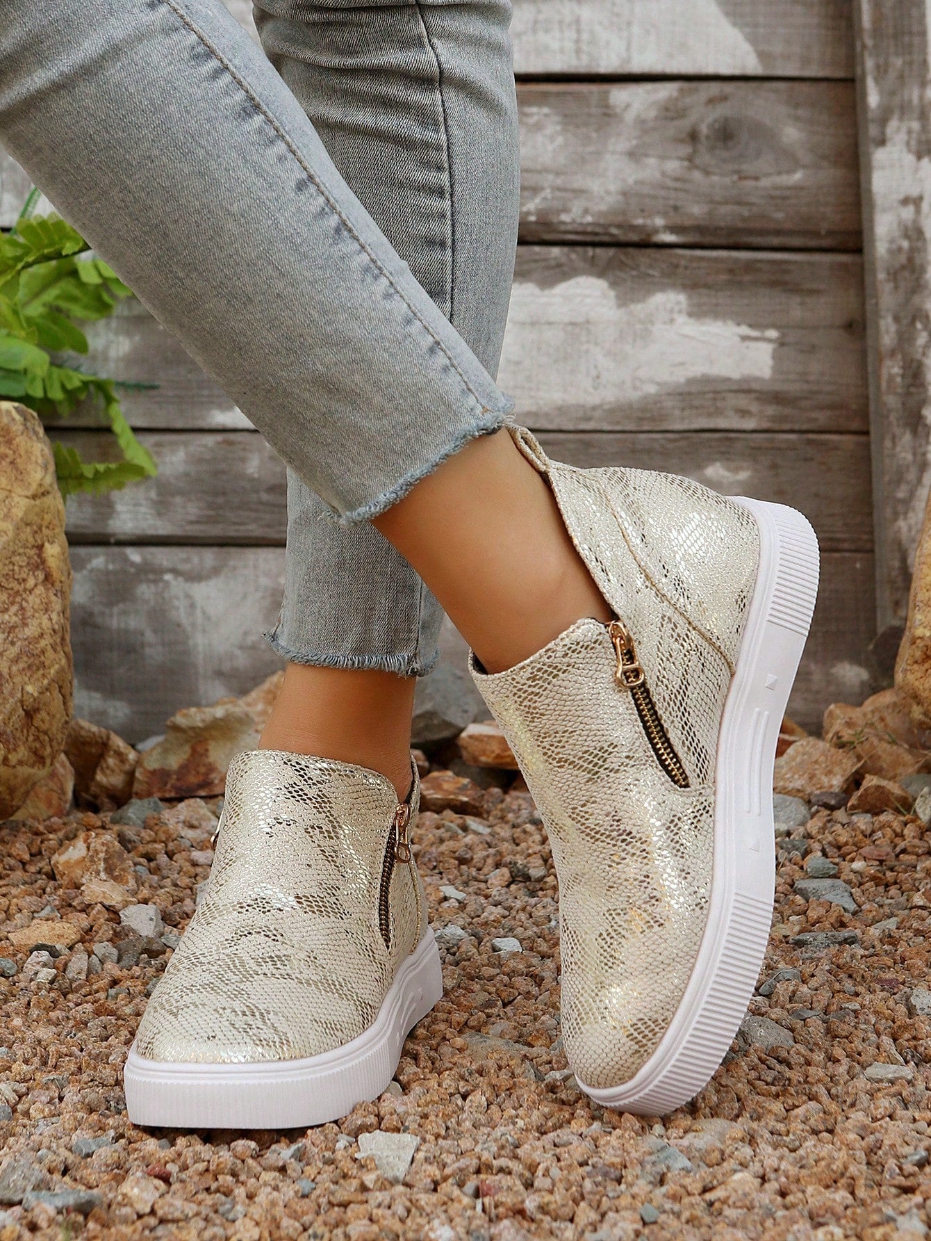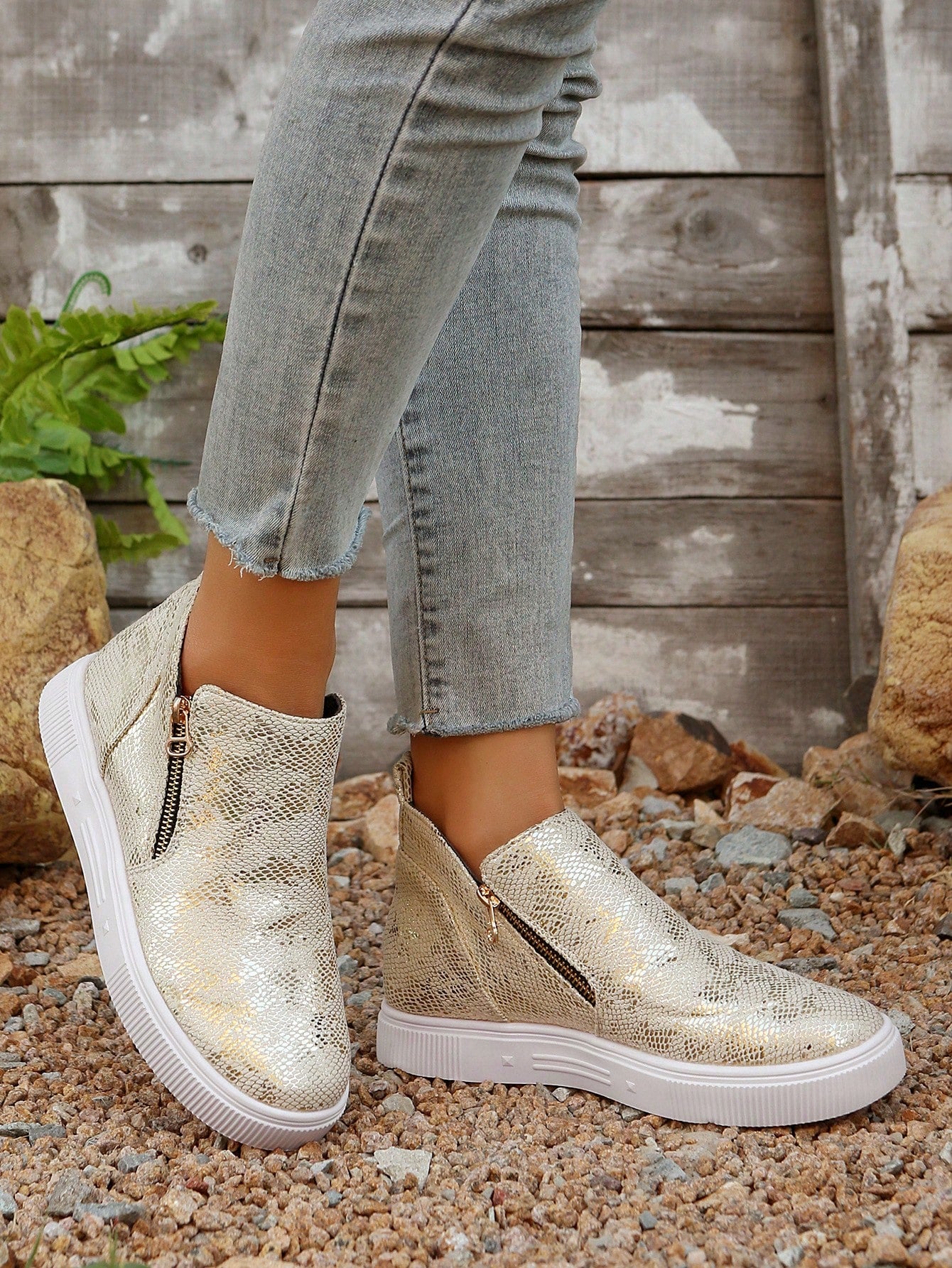 Chic Gold Ankle Boots for Women – Stylish Winter Zip-Up Booties