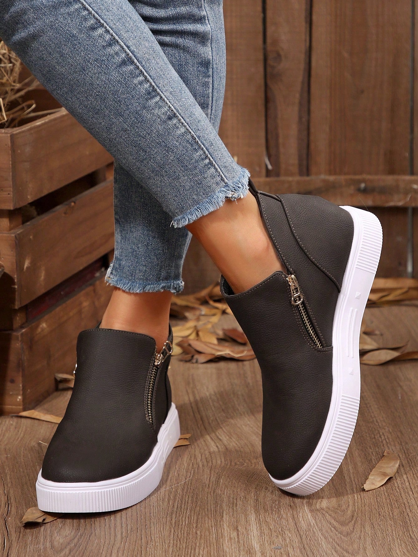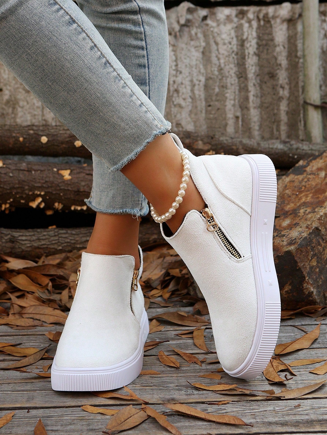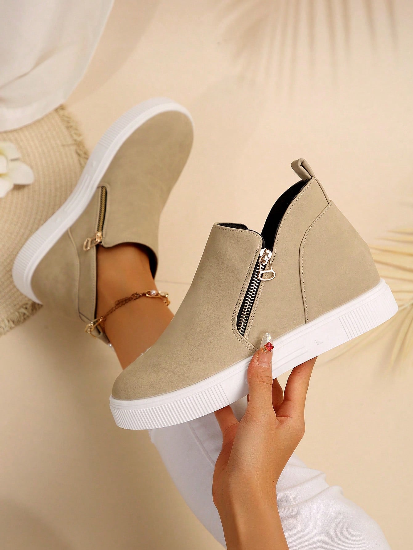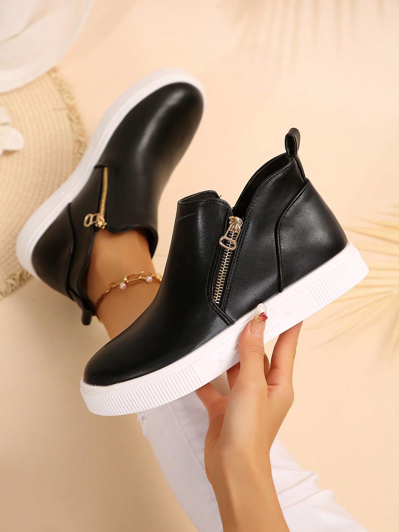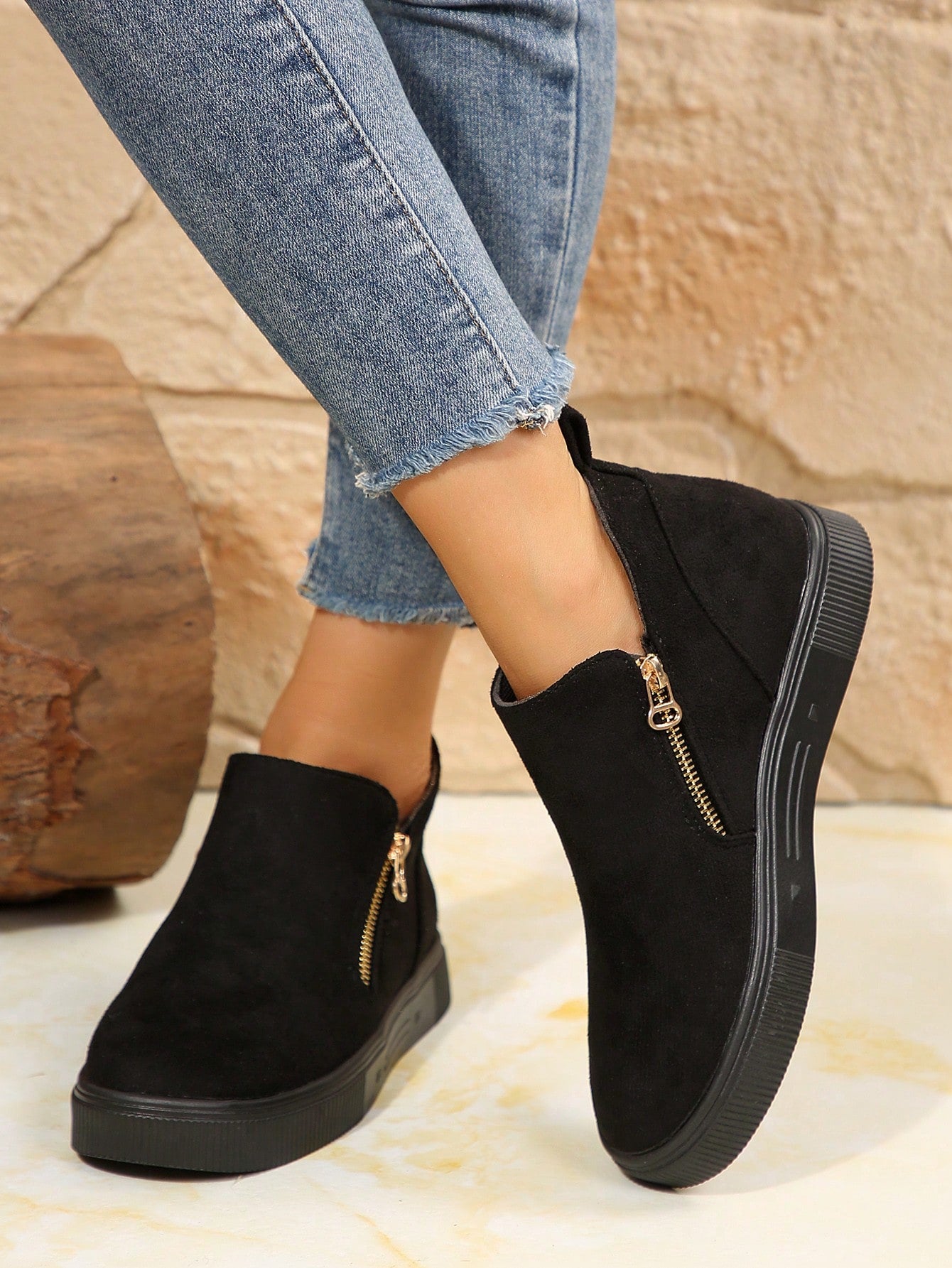 Chic Gold Ankle Boots for Women – Stylish Winter Zip-Up Booties