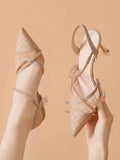 Chic Gold Mesh Strappy High Heels - Elegant Sandals for Effortless Style