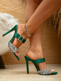 Chic Green Rhinestone-Embellished Pointed Toe High Heels with Elegant Thin Heels