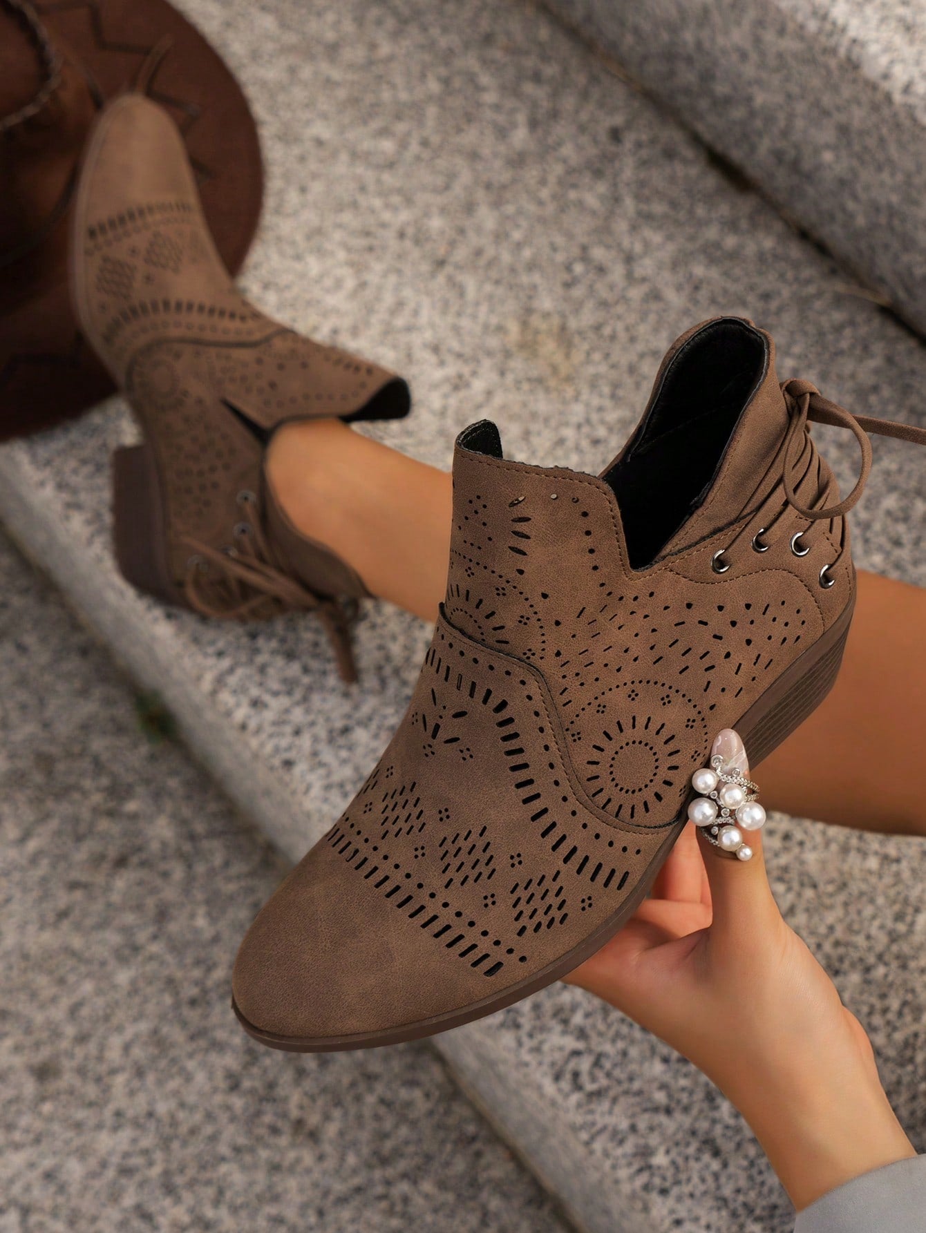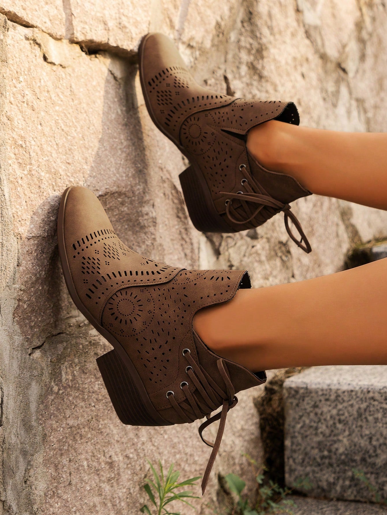 Chic Hollow-Out Back Lace-Up Wedge Heels - Breathable All-Match Boots for Effortless Style