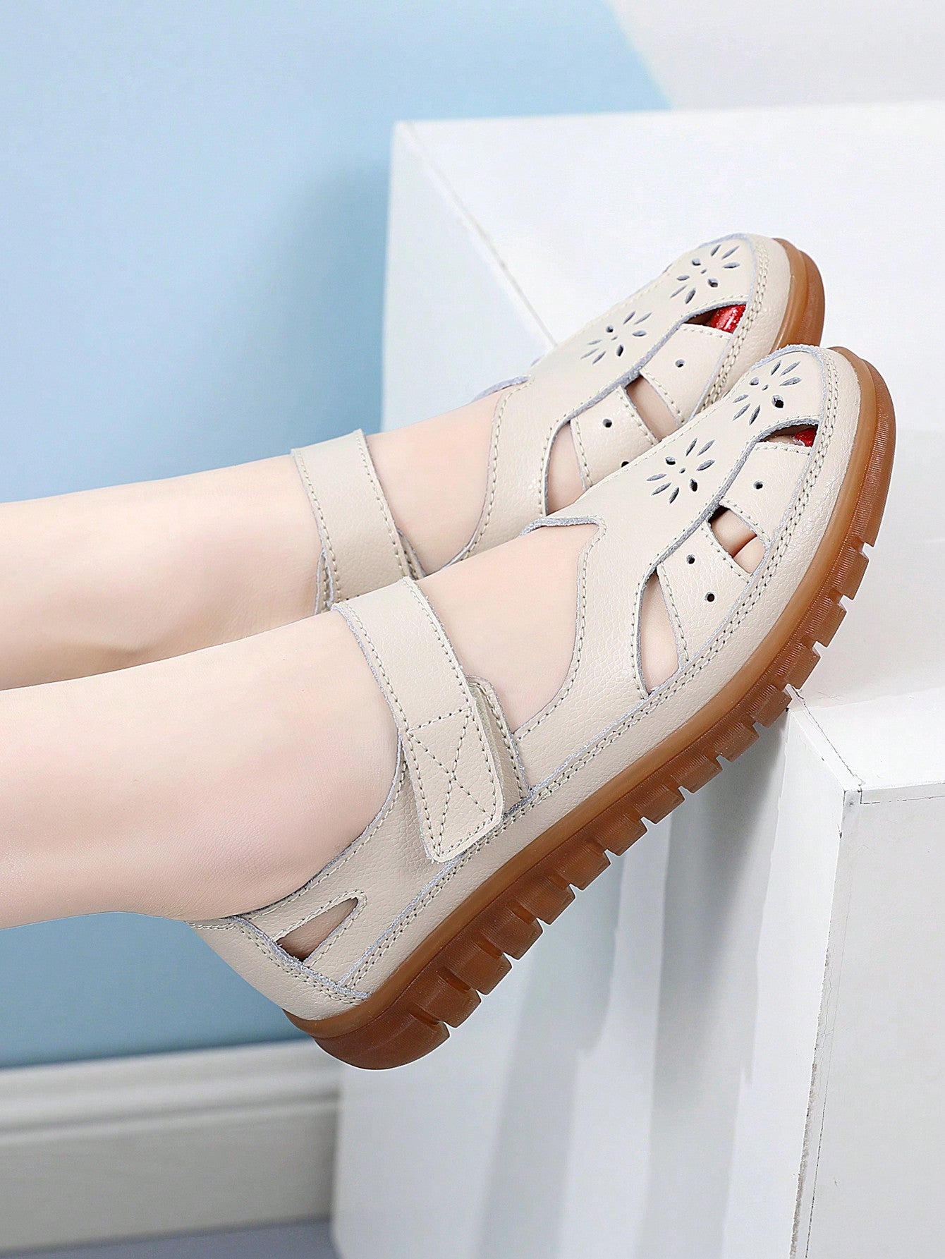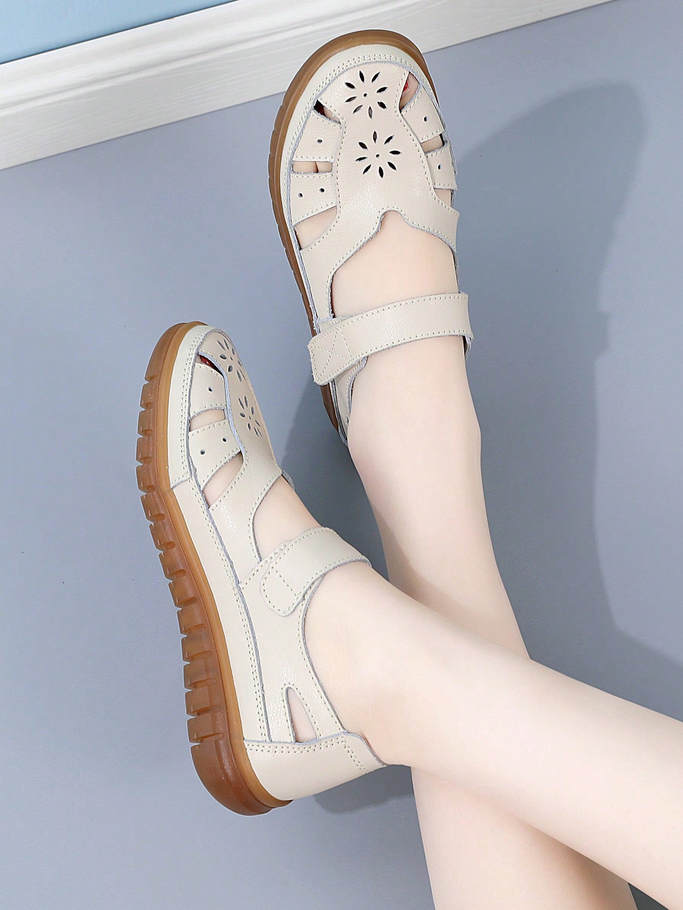 Chic Hollow-Out Genuine Leather Sandals: Comfort Meets Versatility for Every Occasion