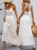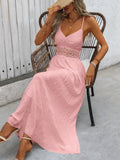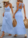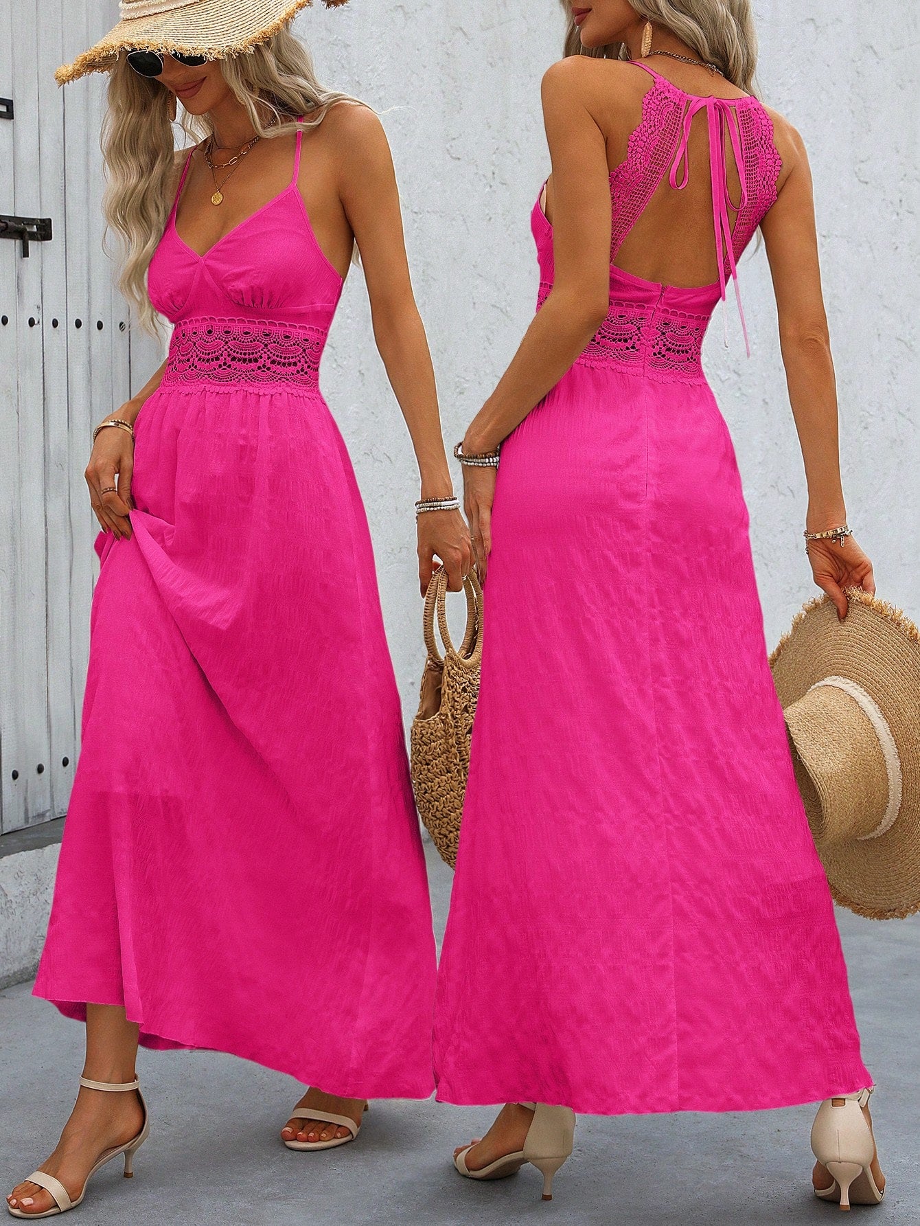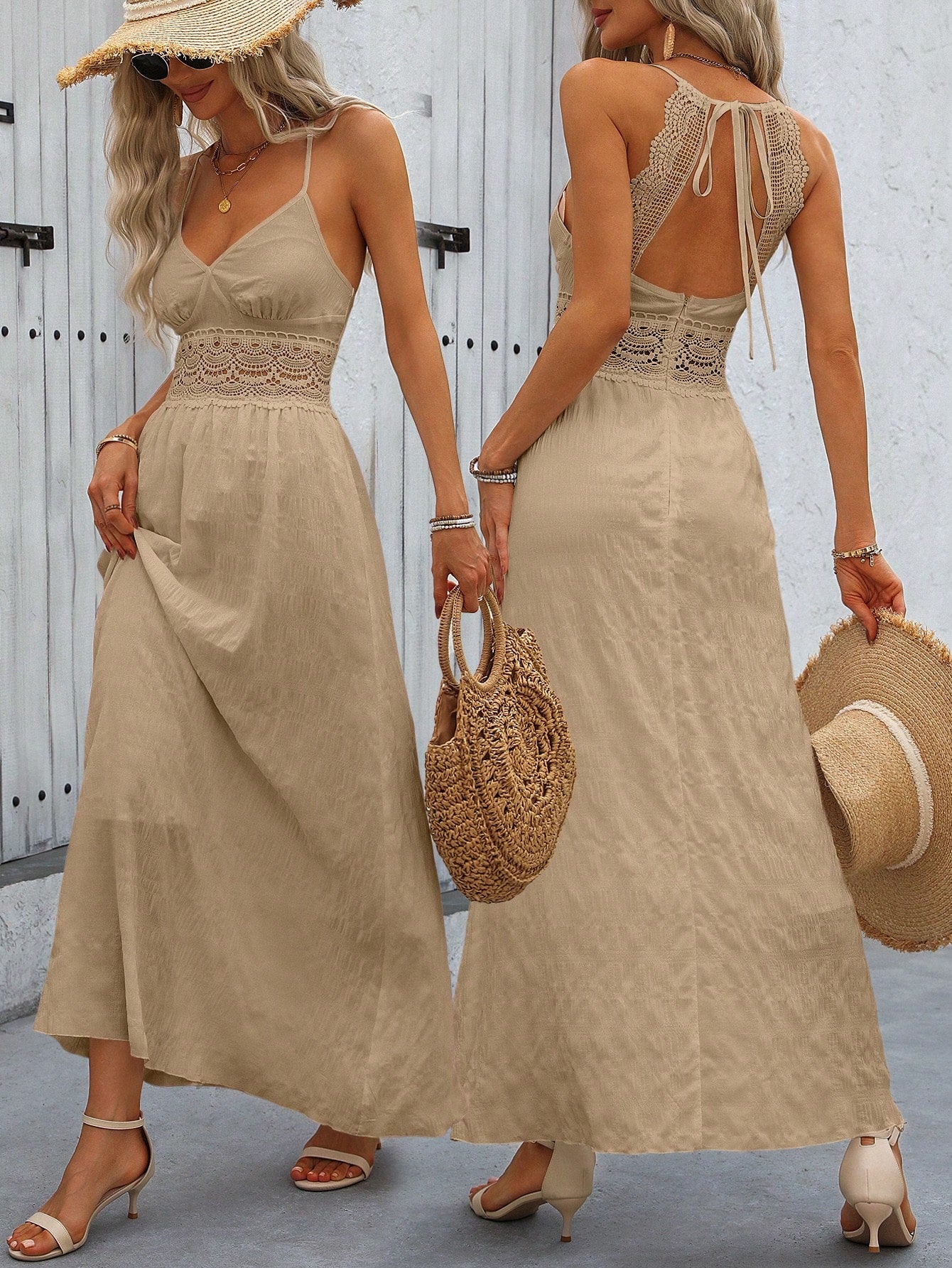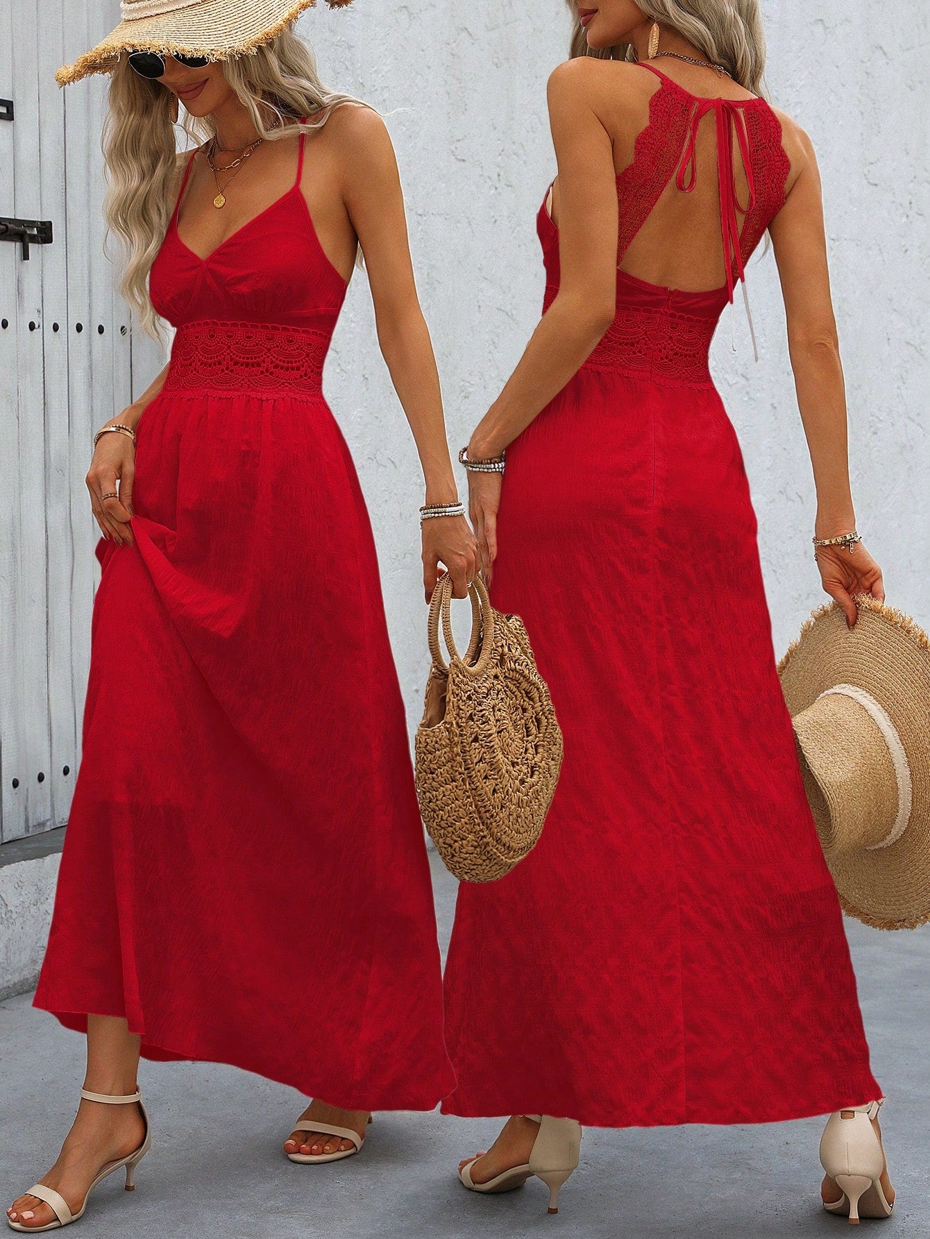 Chic Hollow Spaghetti Strap Backless Flare Dress for Effortless Vacation Style