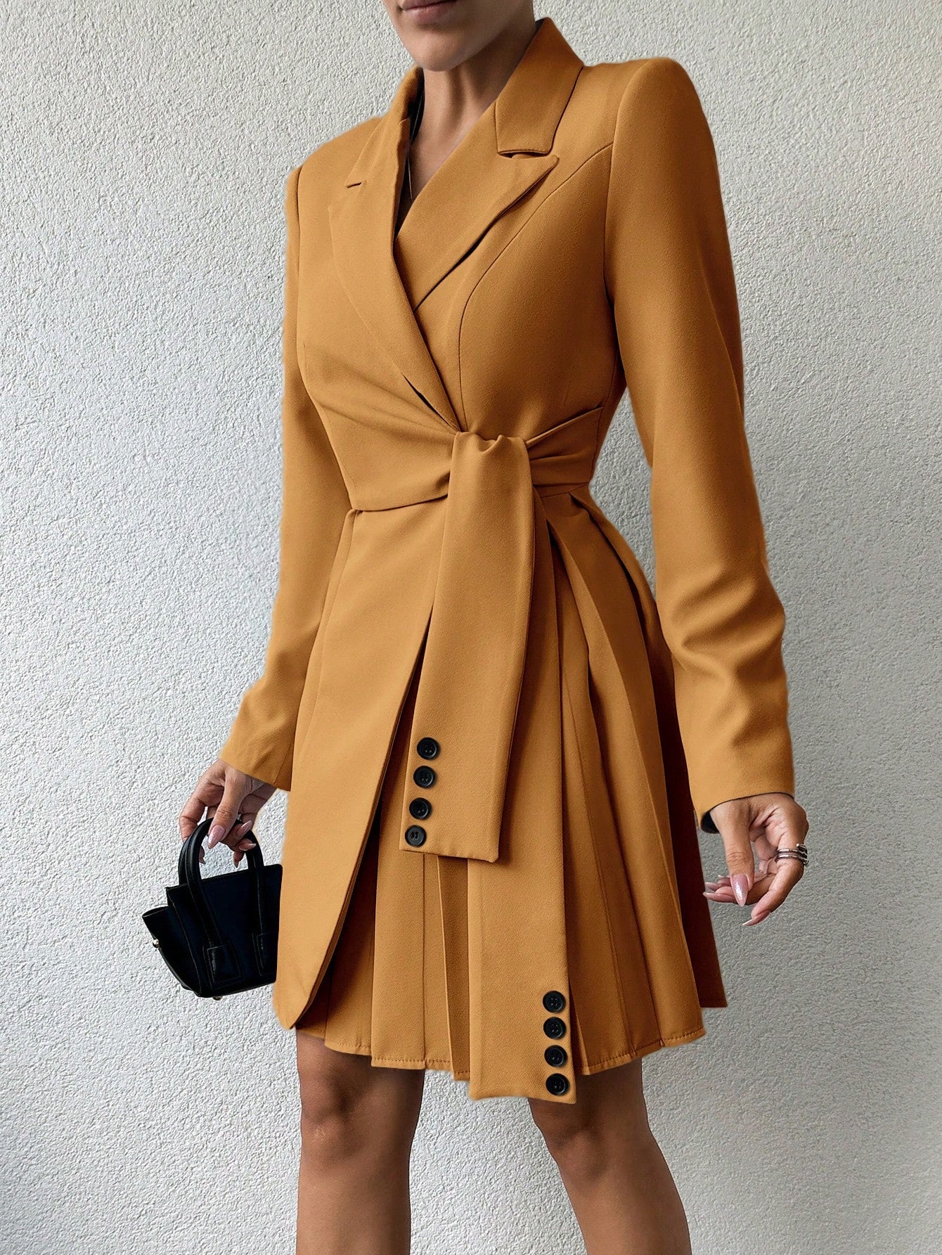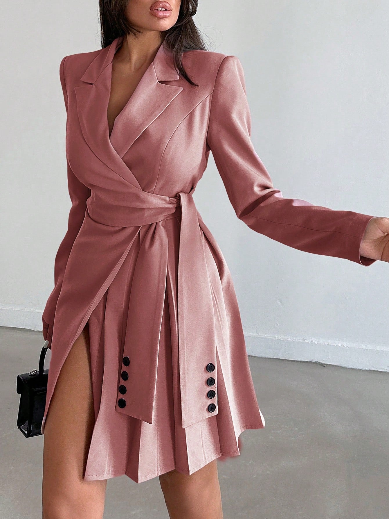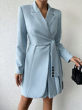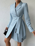 Chic Lapel Neck Knot Side Wrap Blazer Dress - Effortless Elegance for Any Occasion