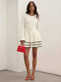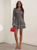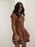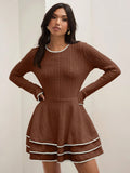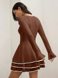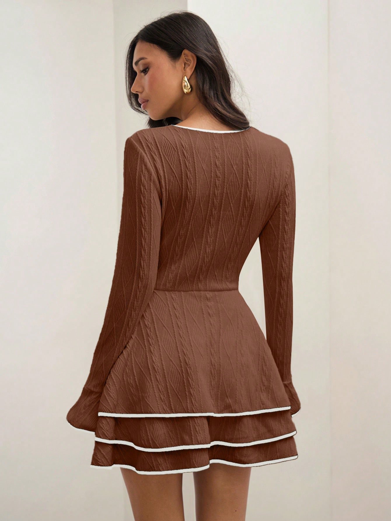 Chic Layered Hem Dress with Patchwork Trim - Elegant Old Money Style for Fall & Winter
