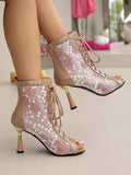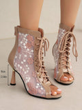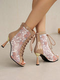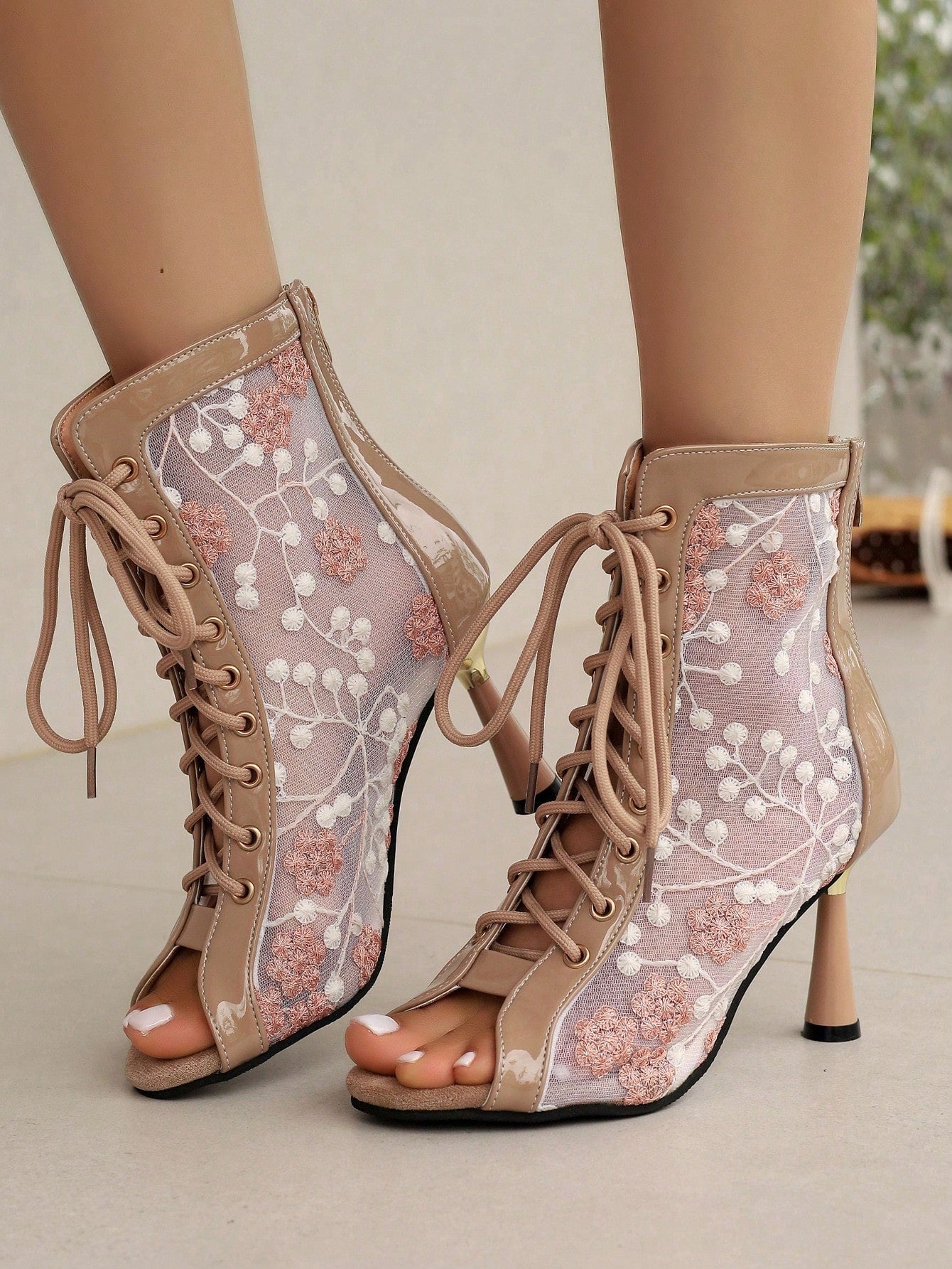 Chic Leather Floral Embroidered Peep-Toe Ankle Boots - Perfect for Parties and Festivals!