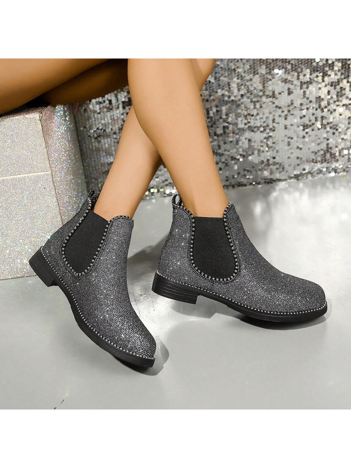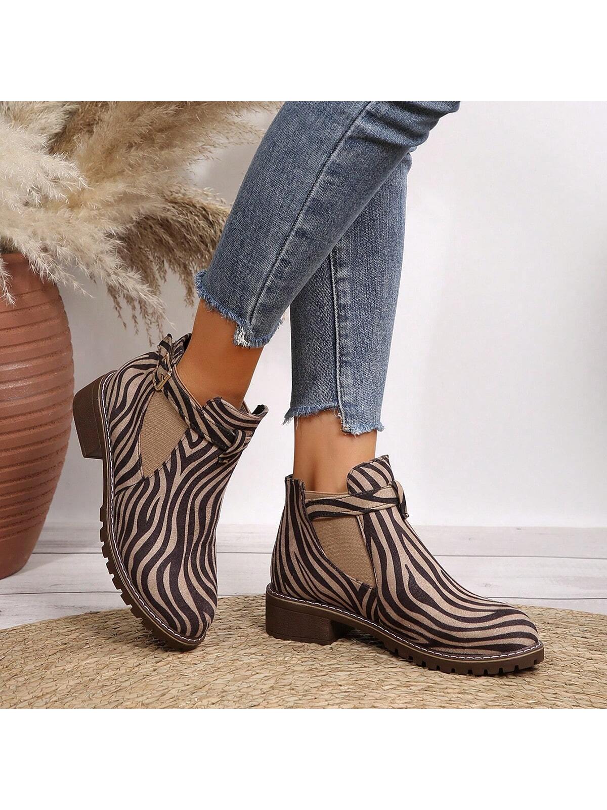 Chic Leopard Print Fur Chunky Heel Chelsea Boots - Perfect for Autumn & Winter
