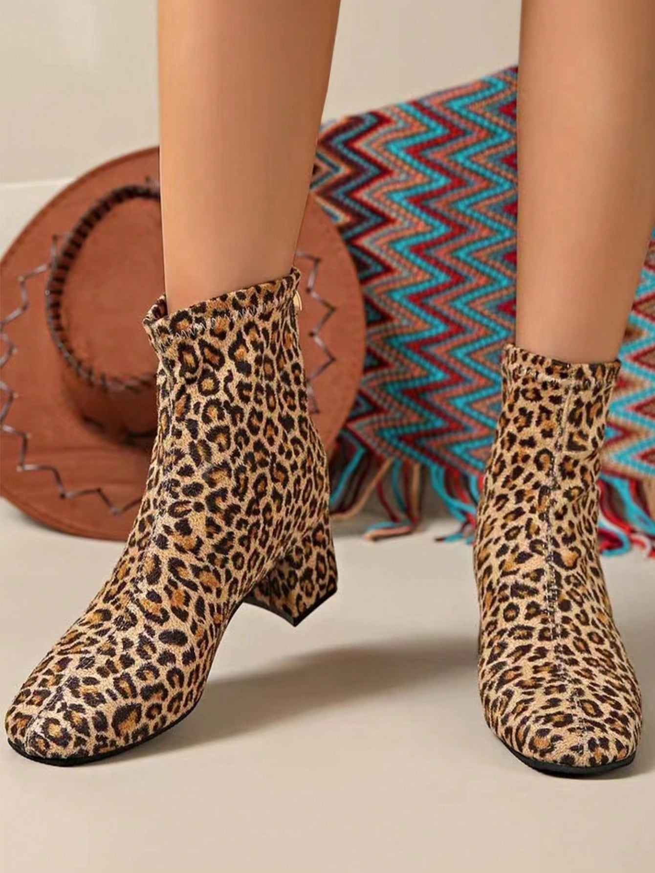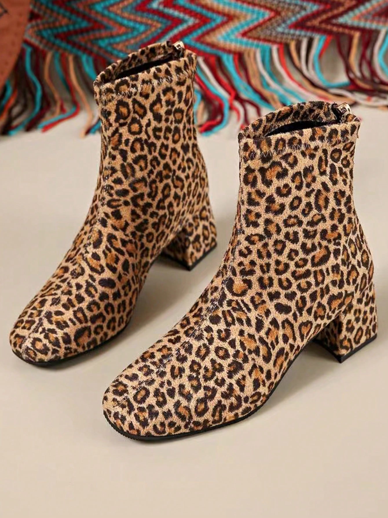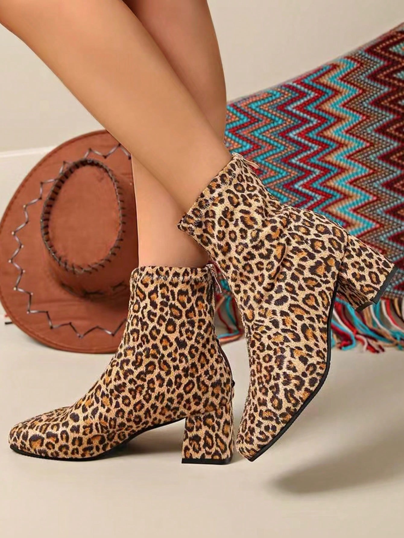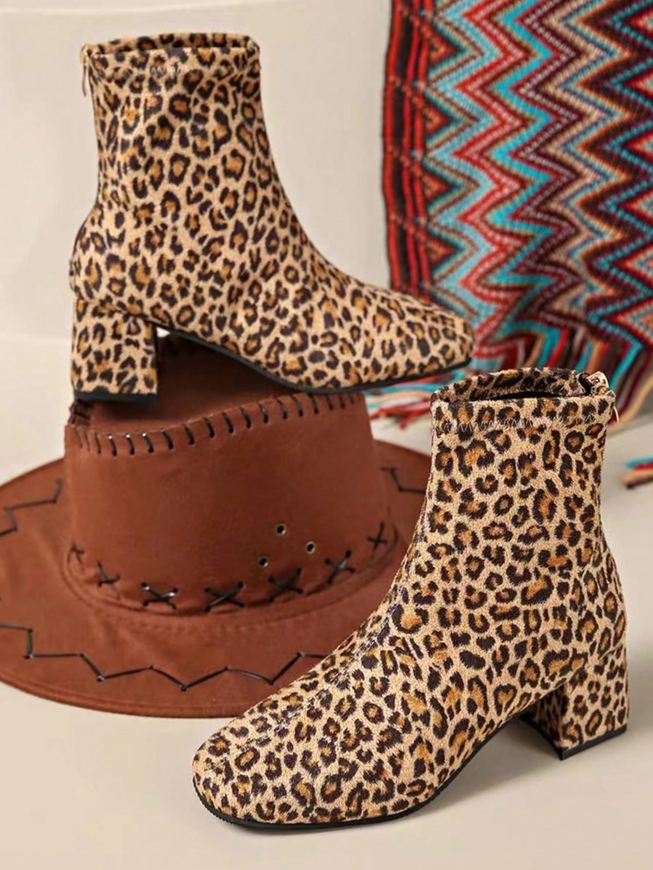 Chic Leopard Print Martin Boots with Rough Heels – Stylish Autumn Footwear for Every Occasion