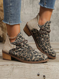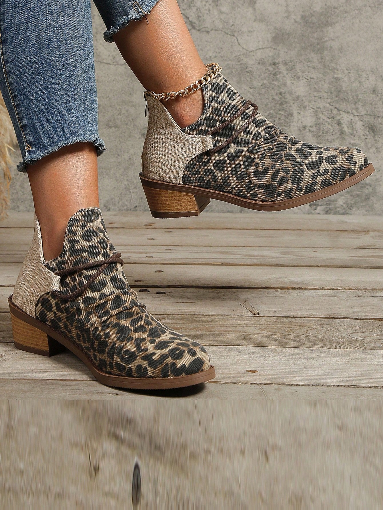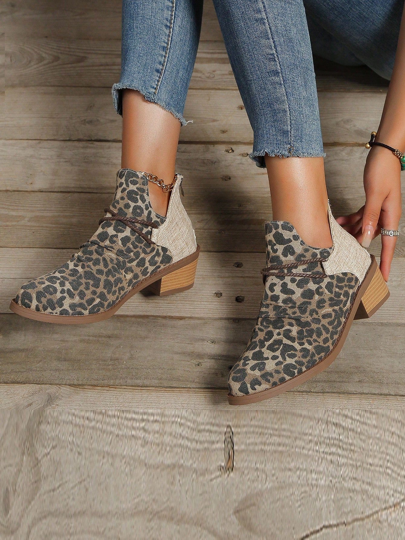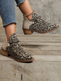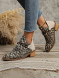 Chic Leopard Print Motorcycle Ankle Boots with Stylish Mid Heels for Spring & Autumn